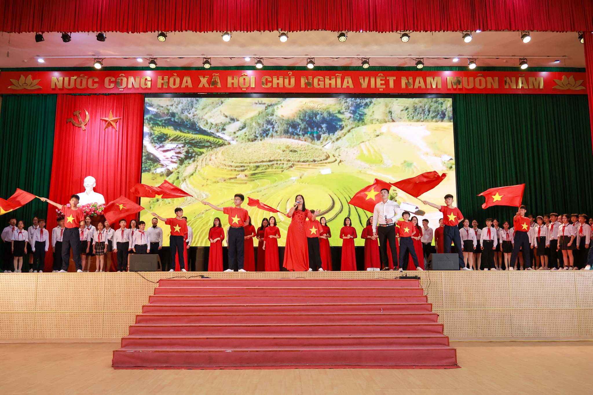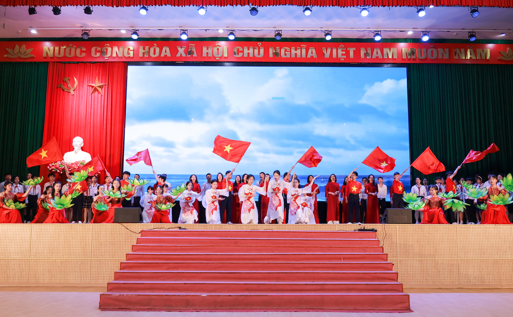 Đáng chú ý, nhiều tiết mục được thể hiện bởi cán bộ, giáo viên, học sinh và người lao động đến từ các đơn vị, trường học trên địa bàn, qua đó cho thấy phong trào văn hóa, văn nghệ quần chúng ngày càng phát triển, gắn bó chặt chẽ với nhiệm vụ chính trị và đời sống xã hội tại địa phương.