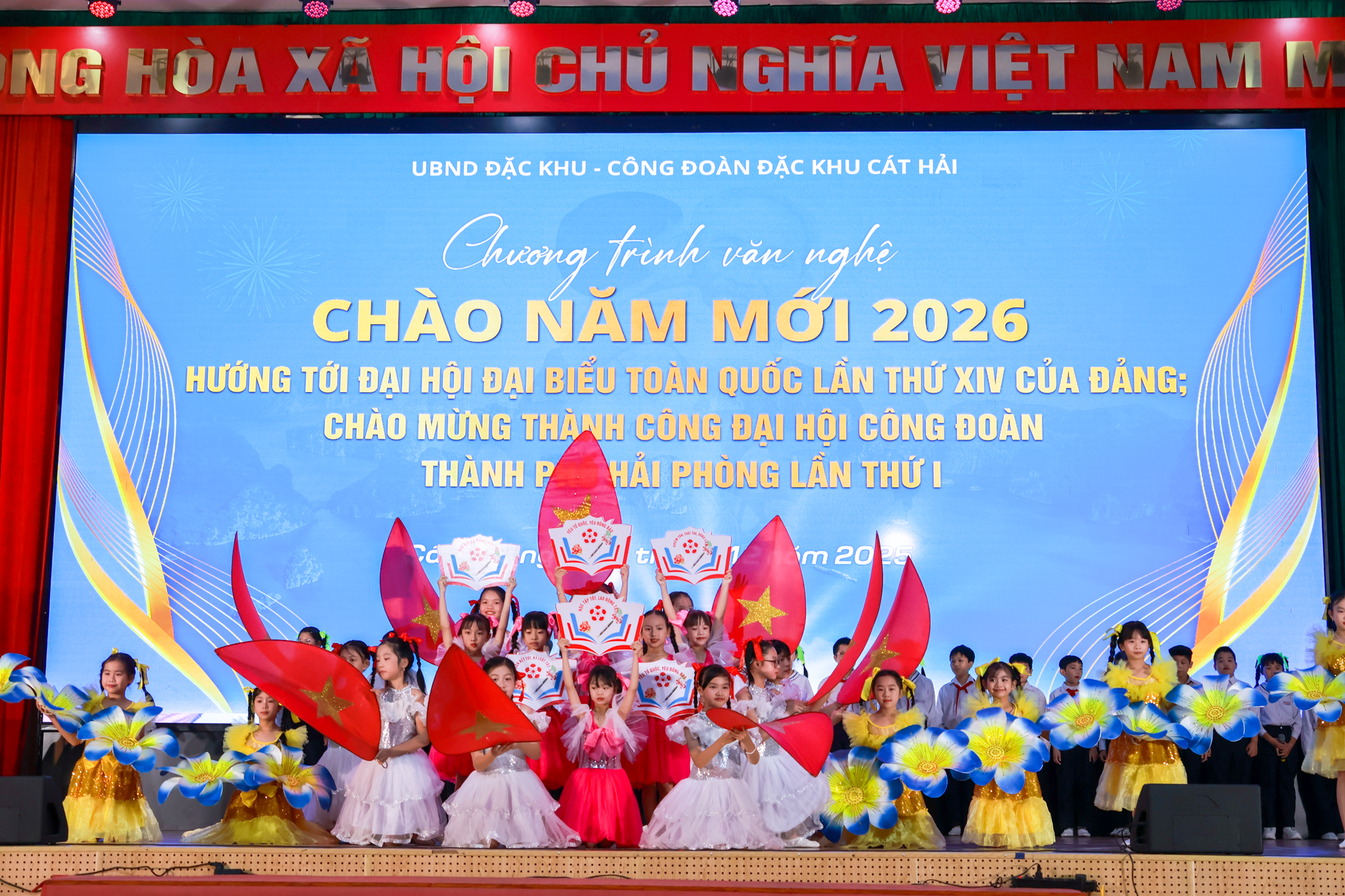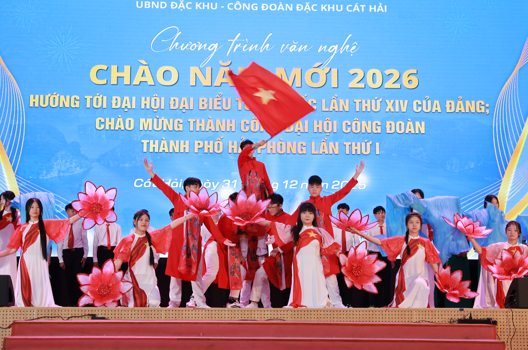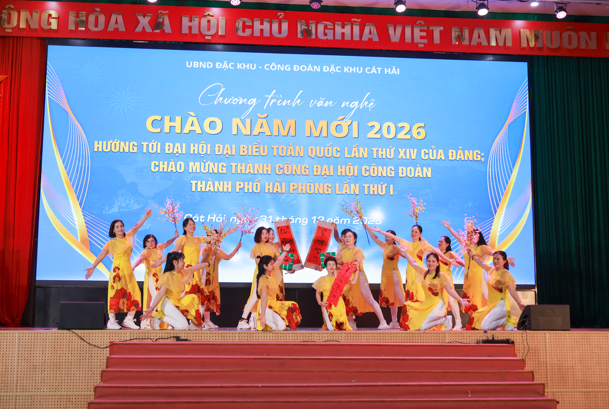 Tối 31/12/2025, tại Trung tâm Dịch vụ sự nghiệp công đặc khu Cát Hải, Ủy ban nhân dân đặc khu phối hợp với Công đoàn đặc khu Cát Hải tổ chức Chương trình văn nghệ “Chào năm mới 2026”. Đây là hoạt động văn hóa có ý nghĩa thiết thực, góp phần tạo không khí phấn khởi, động viên cán bộ, đoàn viên, người lao động và nhân dân địa phương trước thời khắc chuyển giao năm mới, đồng thời hướng tới Đại hội đại biểu toàn quốc lần thứ XIV của Đảng và chào mừng Đại hội Công đoàn thành phố lần thứ nhất.