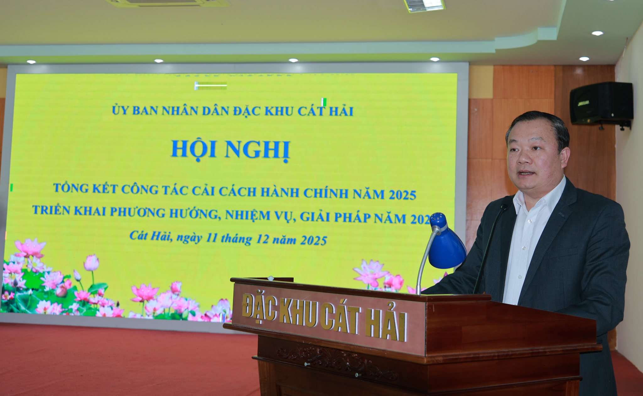 Chiều ngày 11/12/2025, UBND đặc khu Cát Hải long trọng tổ chức Hội nghị tổng kết công tác cải cách hành chính (CCHC) năm 2025, triển khai phương hướng nhiệm vụ, giải pháp năm 2026.