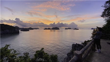 Bình minh Thu khẽ hồng trên sóng Cát Bà thức dậy mờ sương giăng (Bình minh trước Bão số 11 - Matmo) Ảnh: Xuân Thuỷ