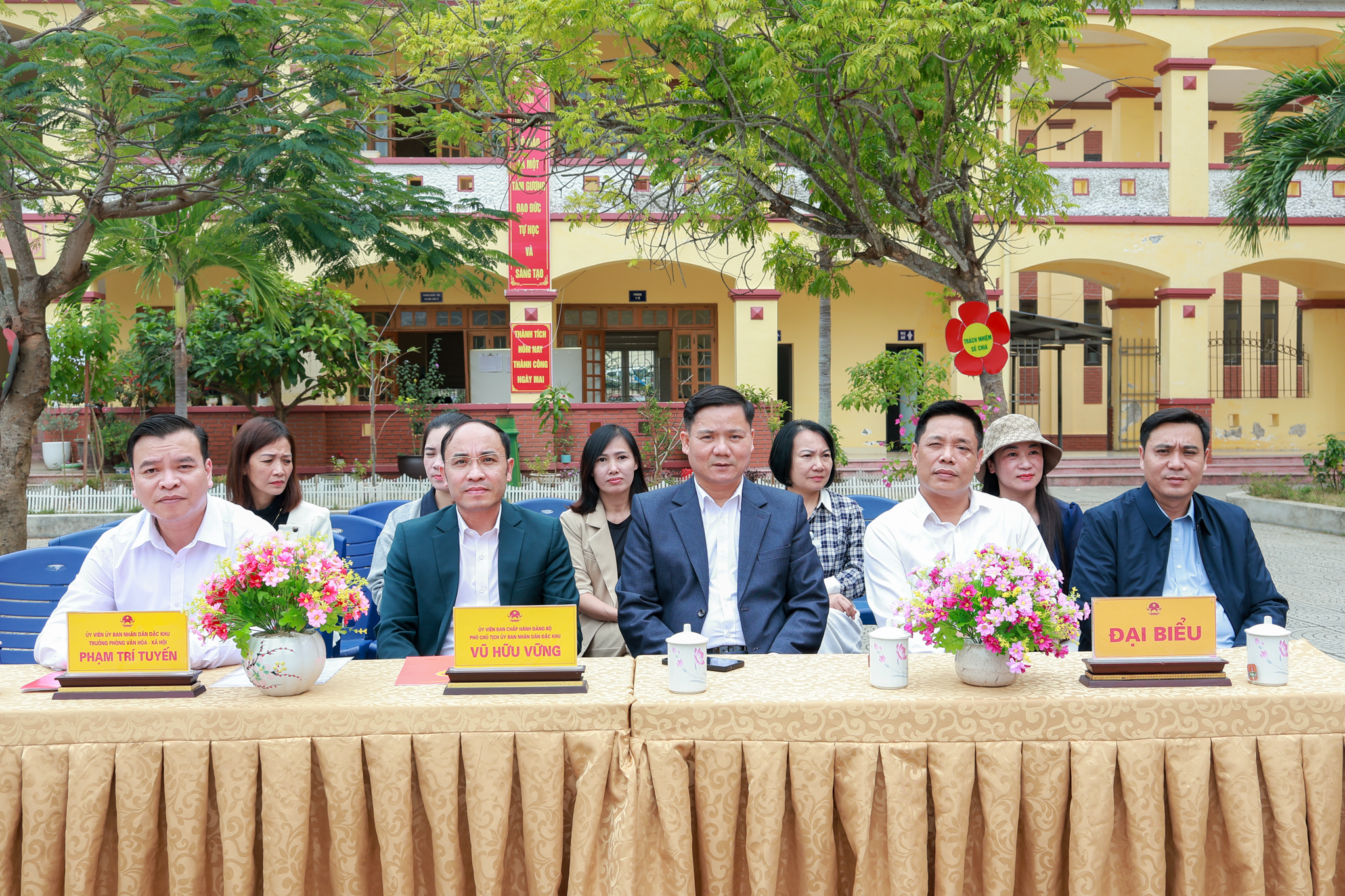 (Đ/c Vũ Hữu Vững - Phó Chủ tịch UBND đặc khu trao tặng Giải Nhất toàn đoàn cho đơn vị Trường THCS thị trấn Cát Bà)