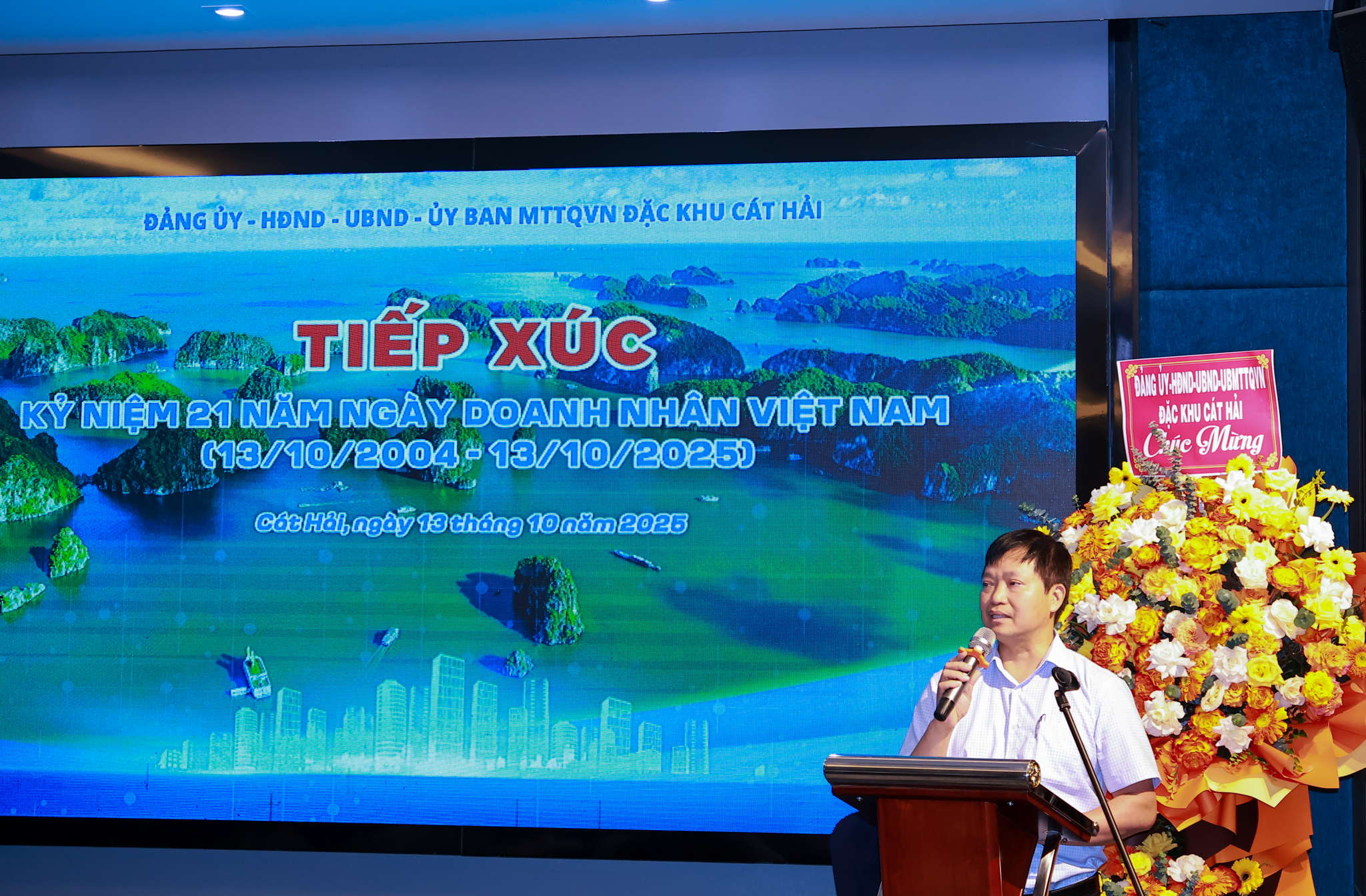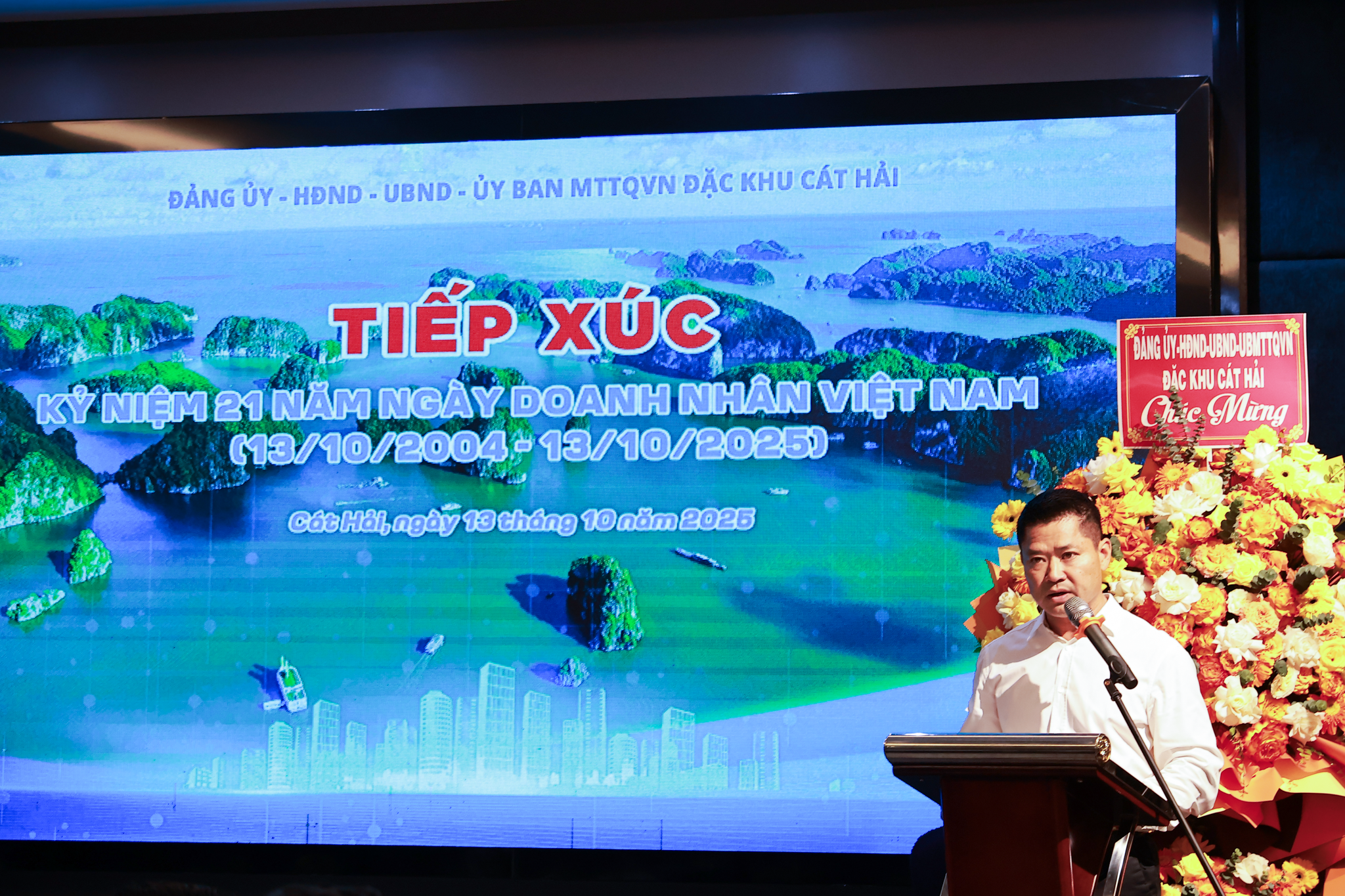 Chiều 13/10, tại khách sạn Paradise (số 231, đường 1/4, đặc khu Cát Hải), Đảng ủy, HĐND, UBND và Ủy ban Mặt trận Tổ quốc Việt Nam đặc khu Cát Hải tổ chức chương trình gặp mặt doanh nhân nhân kỷ niệm 21 năm Ngày Doanh nhân Việt Nam (13/10/2004 – 13/10/2025).