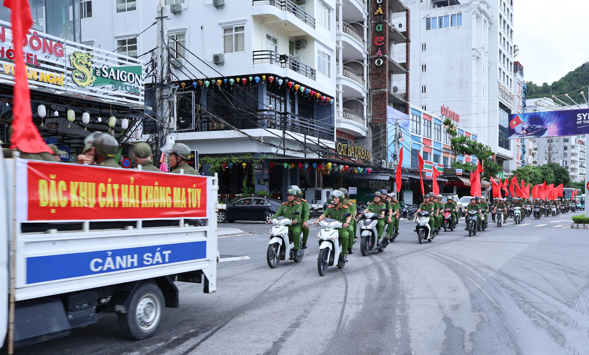 (Công An Cát Hải ra quân quyết tâm xây dựng đặc khu Cát Hải không ma tuý)