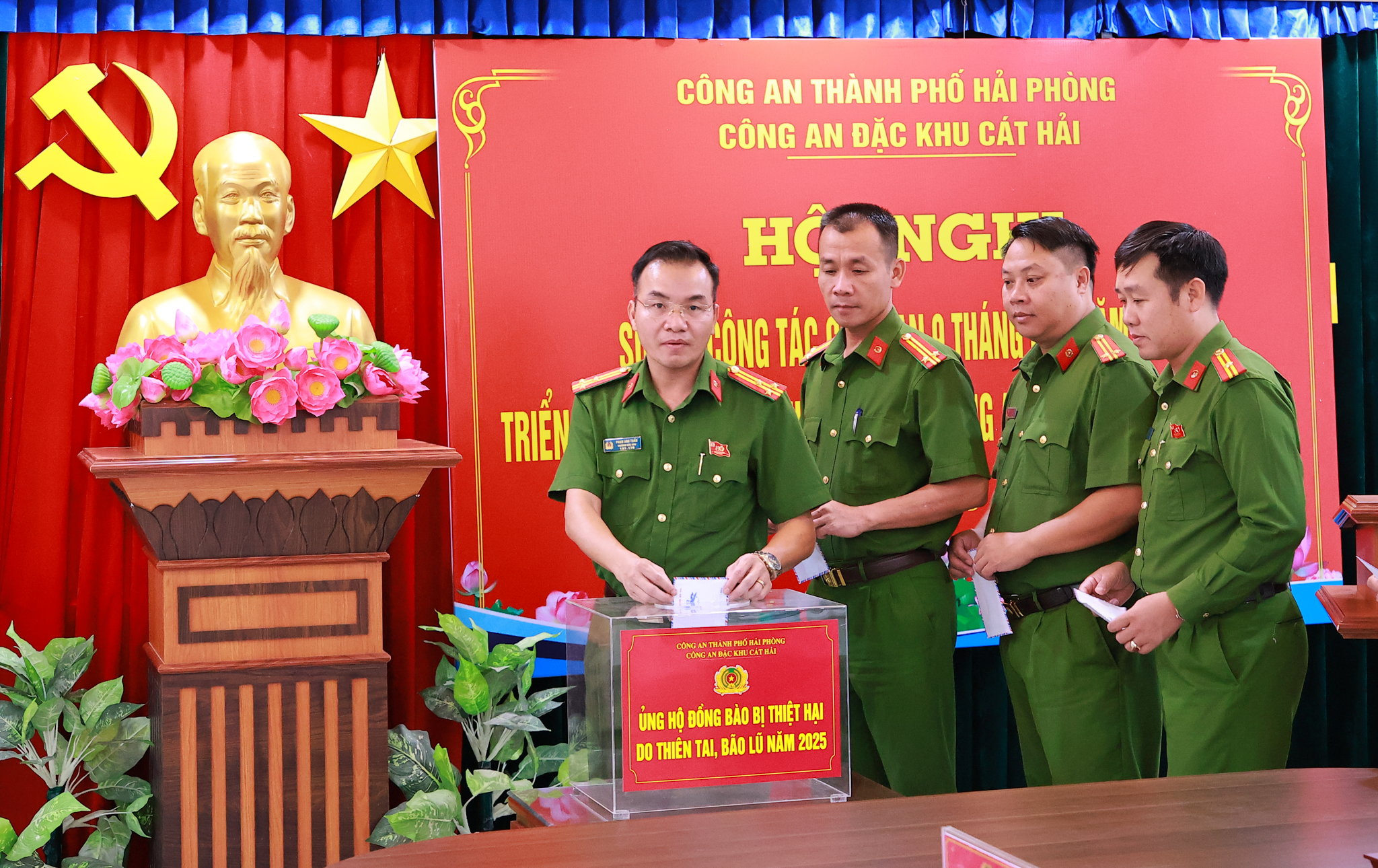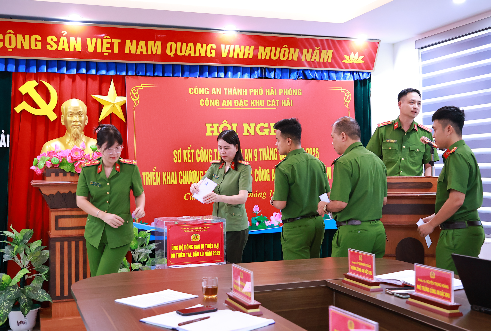 Tại hội nghị, cán bộ, chiến sĩ Công an Đặc khu đã phát động chương trình ủng hộ đồng bào bị thiệt hại do bão lụt gây ra, quyên góp được 27.700.000 đồng, thể hiện tinh thần nhân ái, trách nhiệm xã hội của lực lượng Công an nhân dân.