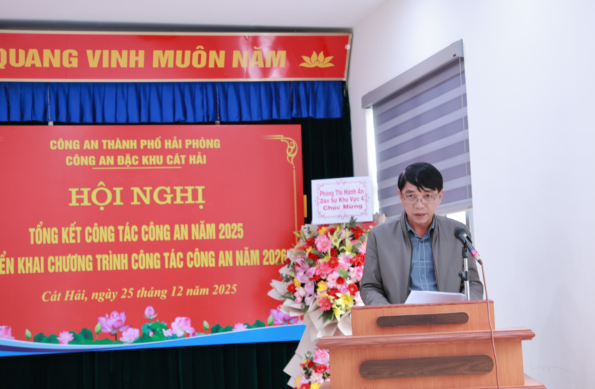 Chiều 25/12, Công an đặc khu Cát Hải tổ chức Hội nghị tổng kết công tác Công an năm 2025, triển khai Chương trình công tác Công an năm 2026. Hội nghị nhằm đánh giá toàn diện kết quả các mặt công tác trong năm qua, đồng thời xác định phương hướng, nhiệm vụ trọng tâm trong năm 2026.