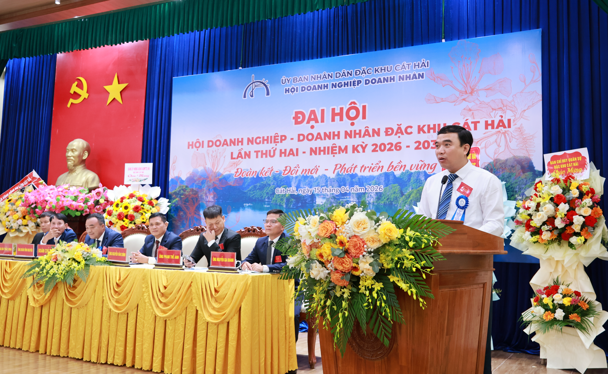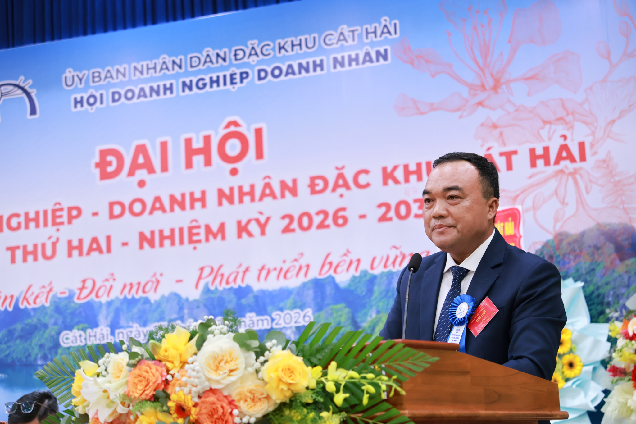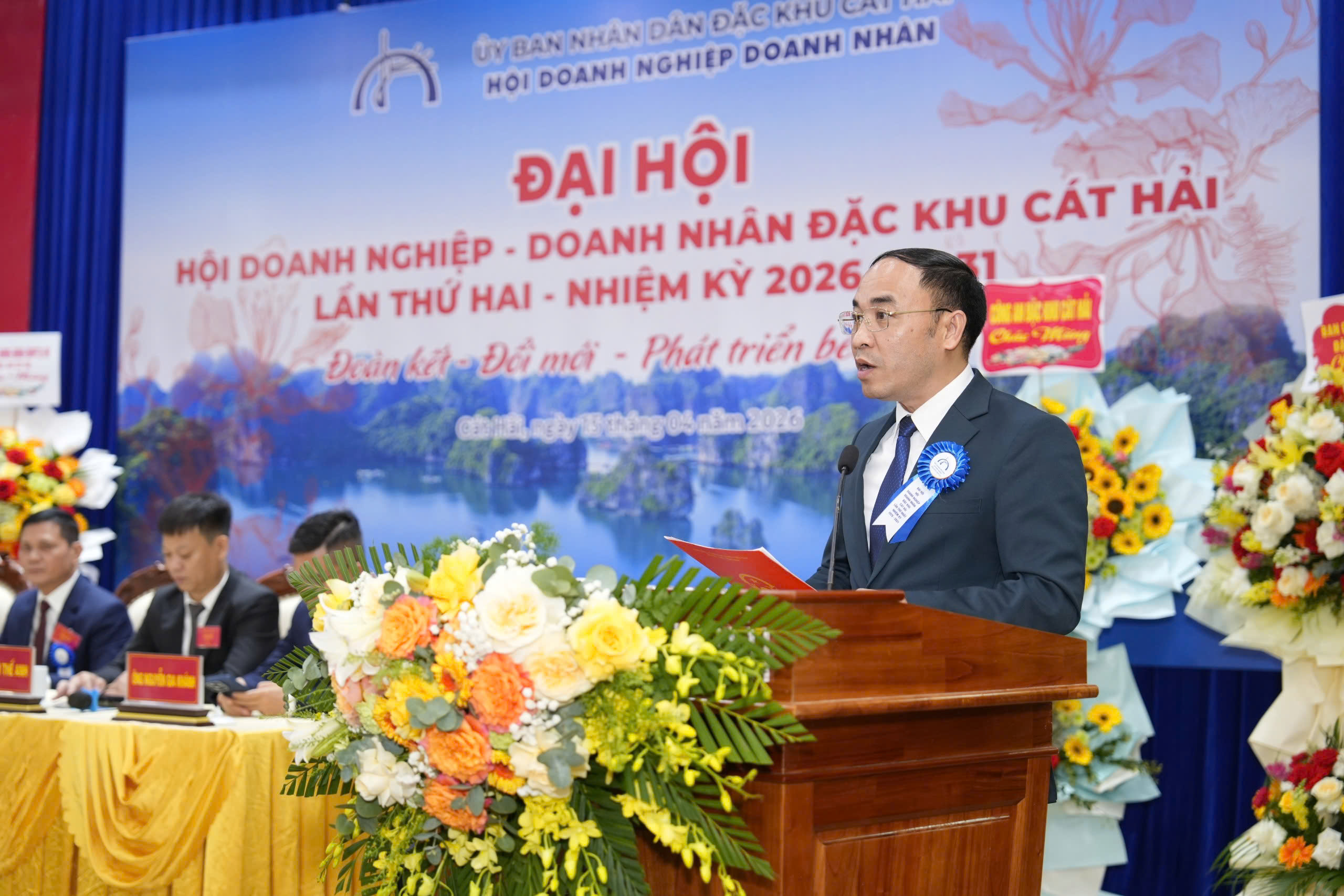 Phát biểu chỉ đạo tại Đại hội, đồng chí Vũ Hữu Vững, Phó Chủ tịch Ủy ban nhân dân đặc khu ghi nhận và đánh giá cao những đóng góp tích cực của cộng đồng doanh nghiệp, doanh nhân đối với sự phát triển kinh tế - xã hội của địa phương trong thời gian qua. Đồng chí nhấn mạnh, trong giai đoạn tới, Hội Doanh nghiệp – Doanh nhân đặc khu Cát Hải cần tiếp tục đổi mới nội dung, phương thức hoạt động theo hướng thiết thực, hiệu quả; khẳng định rõ vai trò là cầu nối tin cậy giữa doanh nghiệp với chính quyền. Đồng thời, chủ động tham gia đề xuất, xây dựng và phản biện chính sách; góp phần cải thiện môi trường đầu tư, kinh doanh minh bạch, thuận lợi; đẩy mạnh liên kết, hợp tác, nâng cao năng lực cạnh tranh của doanh nghiệp, đáp ứng yêu cầu phát triển và hội nhập.