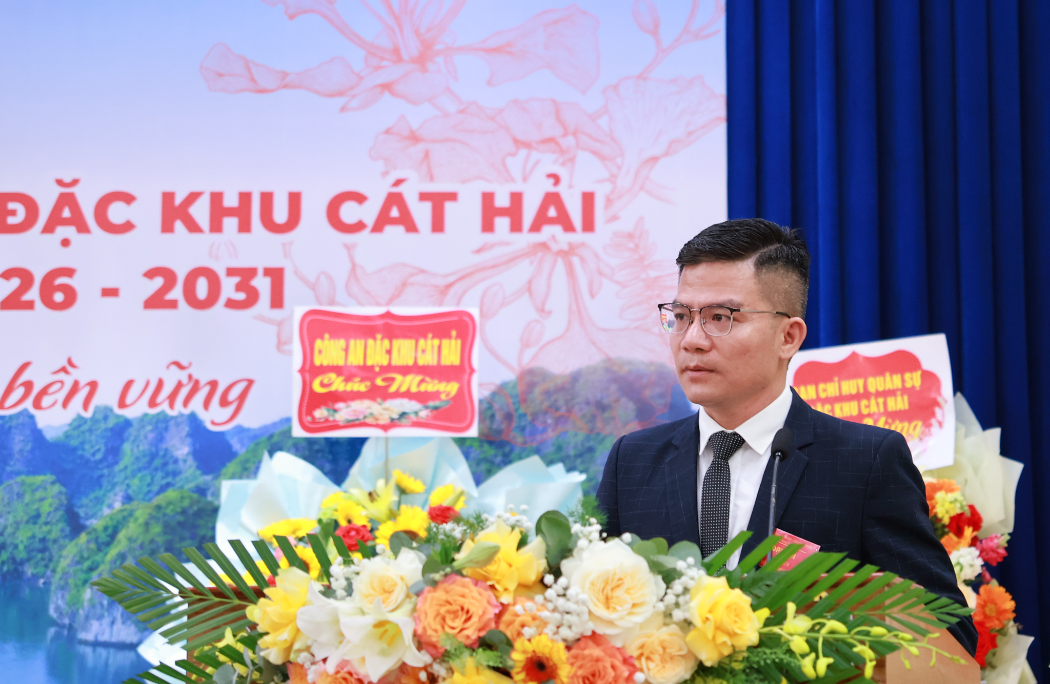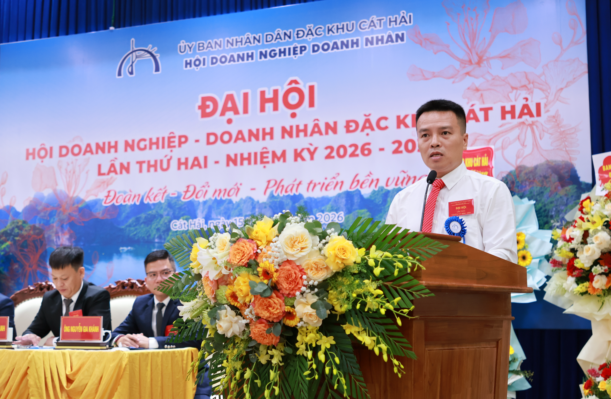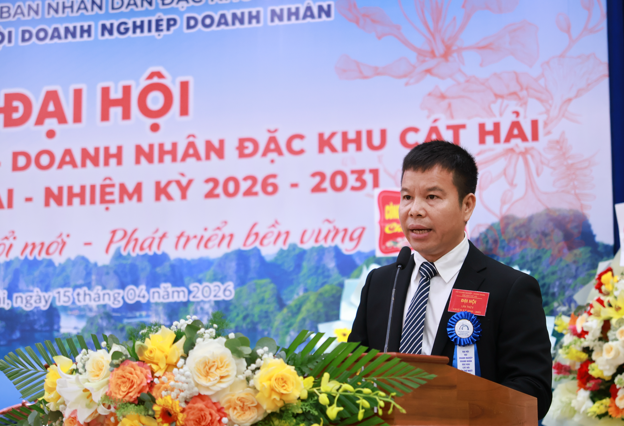 Phát biểu chỉ đạo tại Đại hội, đồng chí Vũ Hữu Vững, Phó Chủ tịch Ủy ban nhân dân đặc khu ghi nhận và đánh giá cao những đóng góp tích cực của cộng đồng doanh nghiệp, doanh nhân đối với sự phát triển kinh tế - xã hội của địa phương trong thời gian qua. Đồng chí nhấn mạnh, trong giai đoạn tới, Hội Doanh nghiệp – Doanh nhân đặc khu Cát Hải cần tiếp tục đổi mới nội dung, phương thức hoạt động theo hướng thiết thực, hiệu quả; khẳng định rõ vai trò là cầu nối tin cậy giữa doanh nghiệp với chính quyền. Đồng thời, chủ động tham gia đề xuất, xây dựng và phản biện chính sách; góp phần cải thiện môi trường đầu tư, kinh doanh minh bạch, thuận lợi; đẩy mạnh liên kết, hợp tác, nâng cao năng lực cạnh tranh của doanh nghiệp, đáp ứng yêu cầu phát triển và hội nhập.