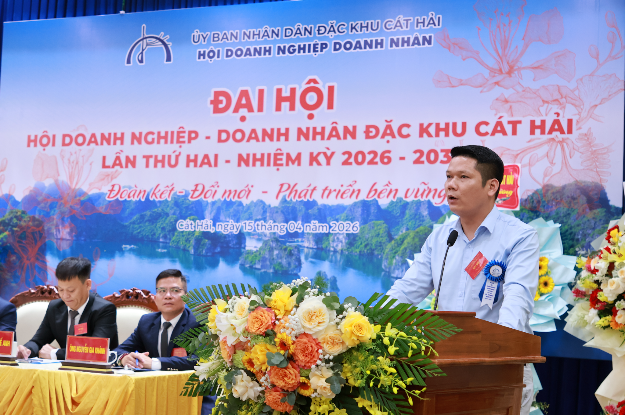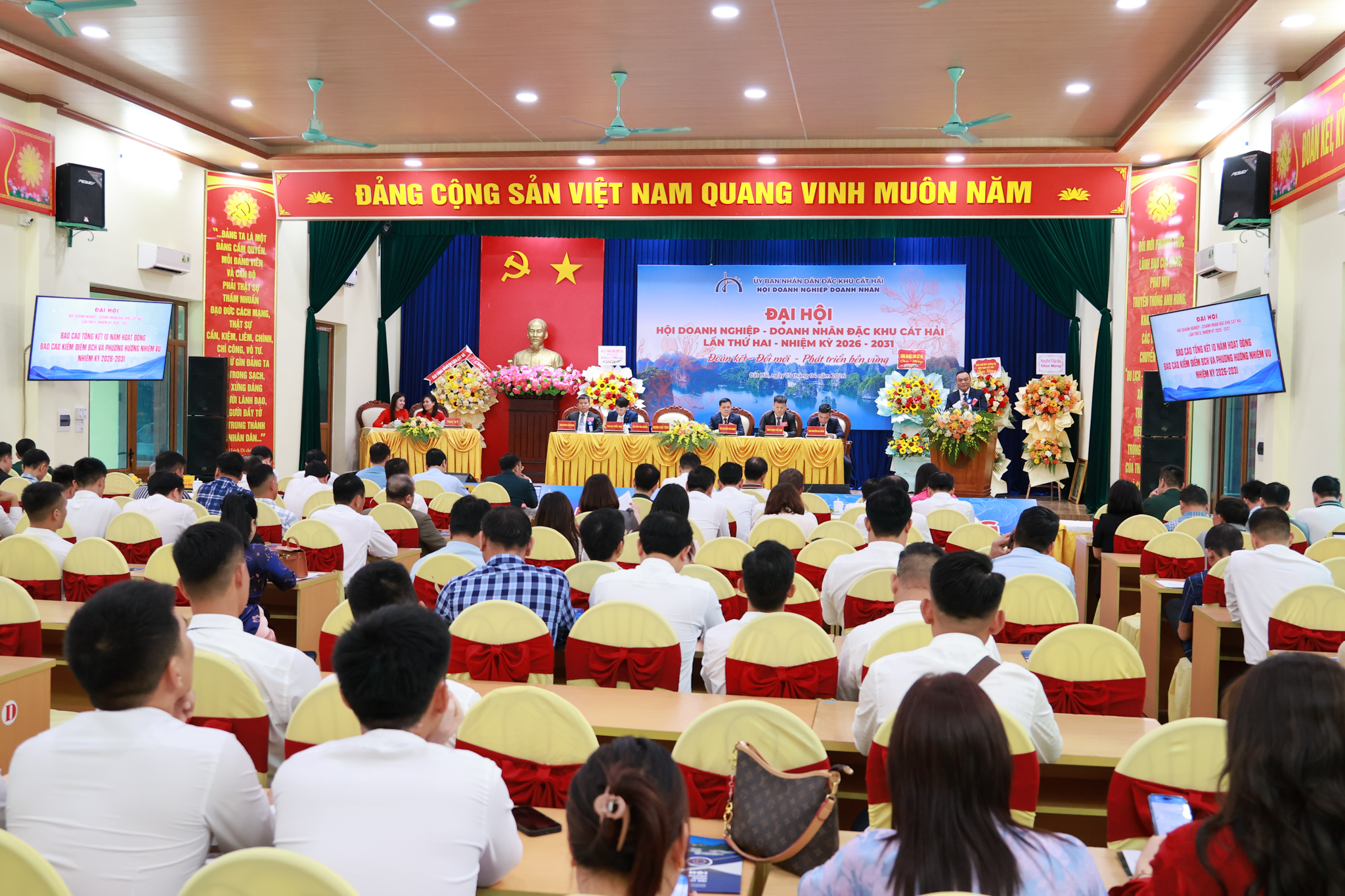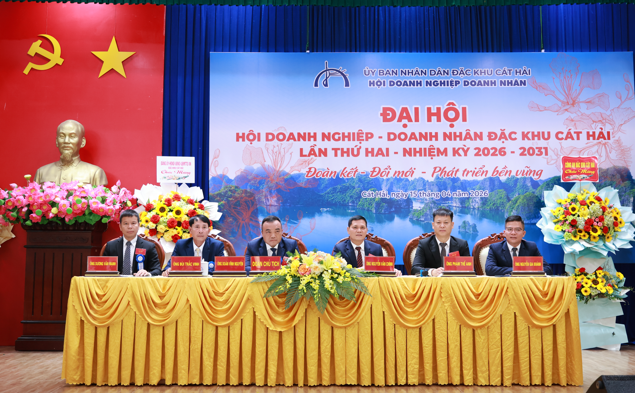 Chiều 15/4, Hội Doanh nghiệp – Doanh nhân đặc khu Cát Hải tổ chức Đại hội lần thứ II, nhiệm kỳ 2026–2031, đánh dấu bước phát triển mới trong việc củng cố tổ chức, nâng cao vai trò kết nối và đồng hành cùng cộng đồng doanh nghiệp trên địa bàn. Dự đại hội có lãnh đạo Hiệp hội Du lịch thành phố Hải Phòng; lãnh đạo Đảng ủy, Hội đồng nhân dân, Ủy ban nhân dân, Ủy ban Mặt trận Tổ quốc Việt Nam đặc khu cùng 150 đại biểu chính thức, đại diện cho hơn 300 doanh nghiệp đang hoạt động sản xuất, kinh doanh tại địa phương.