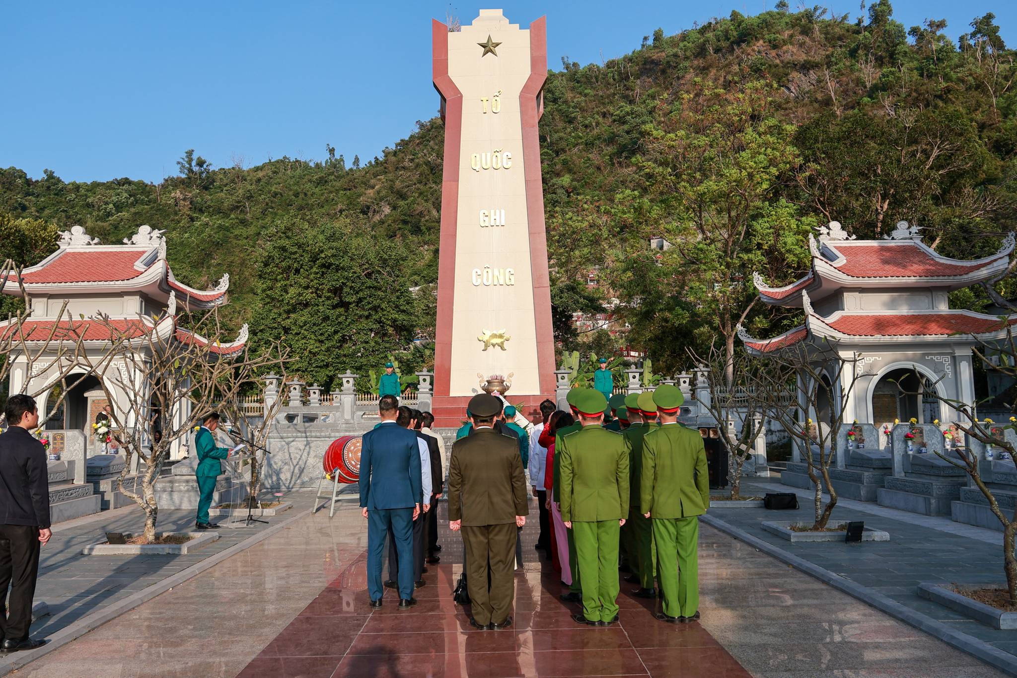(Các đồng chí lãnh đạo Đặc khu Cát Hải thành kính tưởng niệm các anh hùng liệt sĩ tại Nghĩa trang liệt sĩ đảo Cát Bà)