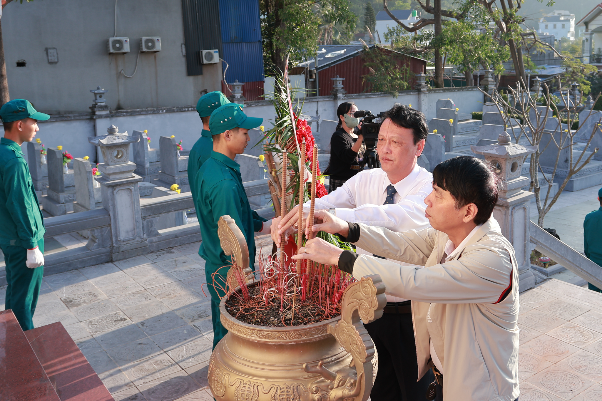 (Bí thư Đảng uỷ, Chủ tịch HĐND đặc khu Trần Văn Phương thắp hương phần mộ Liệt sĩ tại nghĩa trang Liệt sĩ đảo Cát Hải)