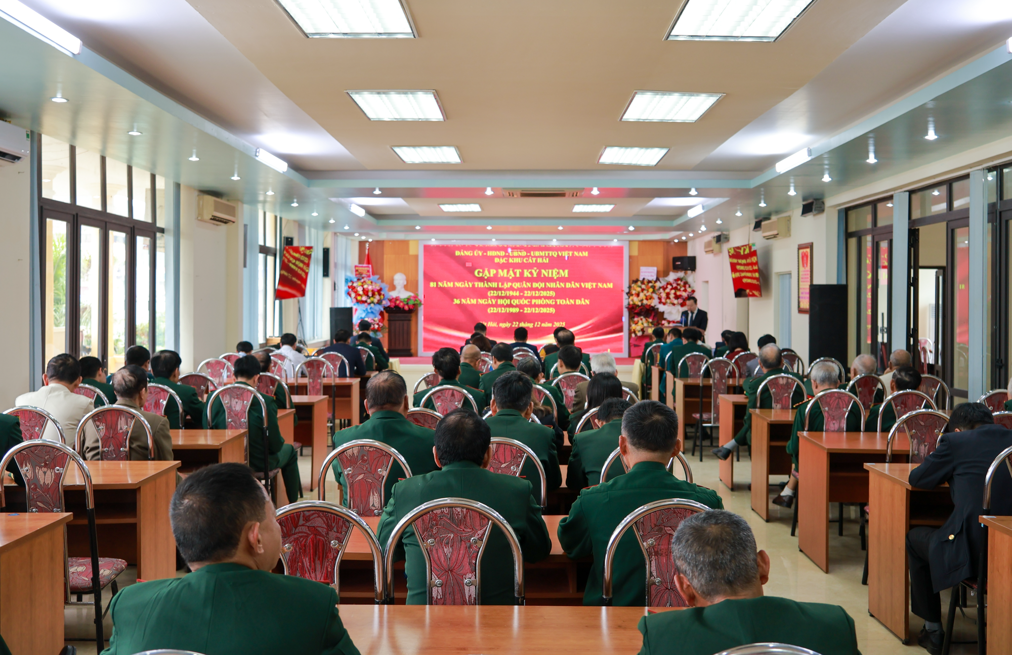 Sáng 22/12/2025, Đảng ủy, Hội đồng nhân dân, Ủy ban nhân dân, Ủy ban Mặt trận Tổ quốc Việt Nam đặc khu Cát Hải đã trang trọng tổ chức gặp mặt các đồng chí cán bộ quân đội đã nghỉ hưu, nghỉ công tác trên địa bàn, nhân kỷ niệm 81 năm Ngày thành lập Quân đội nhân dân Việt Nam (22/12/1944 – 22/12/2025) và 36 năm Ngày hội Quốc phòng toàn dân (22/12/1989 – 22/12/2025).