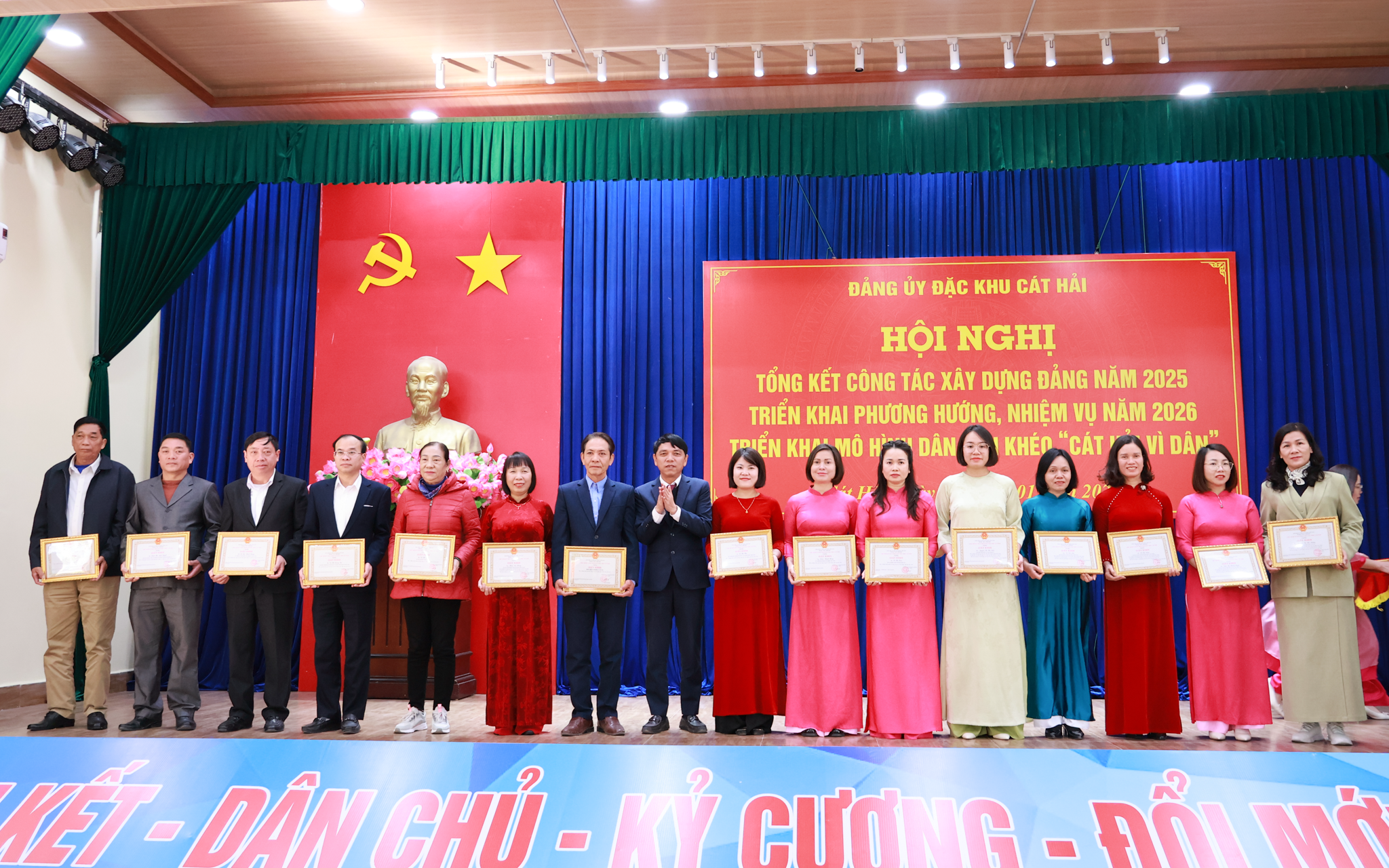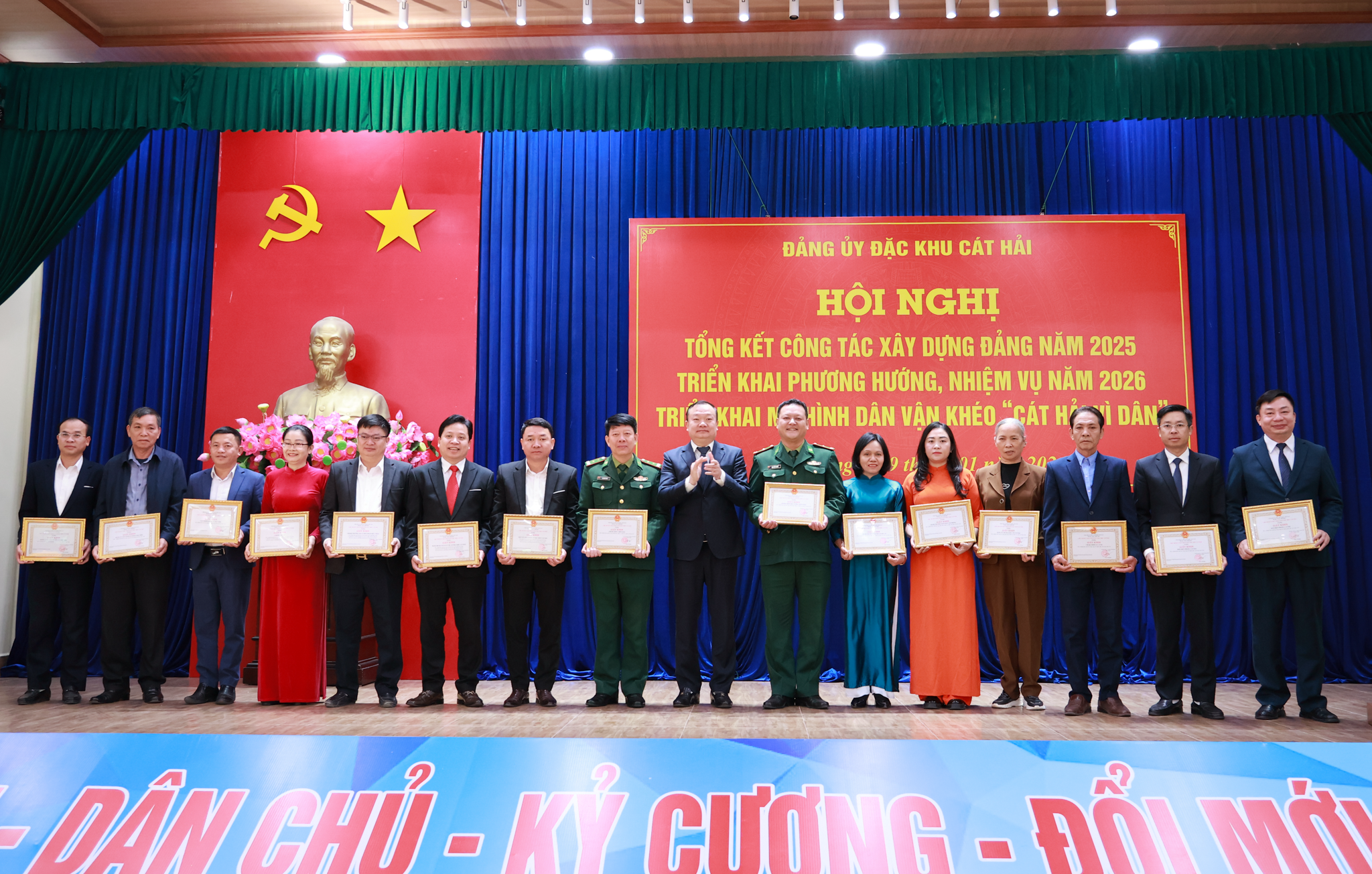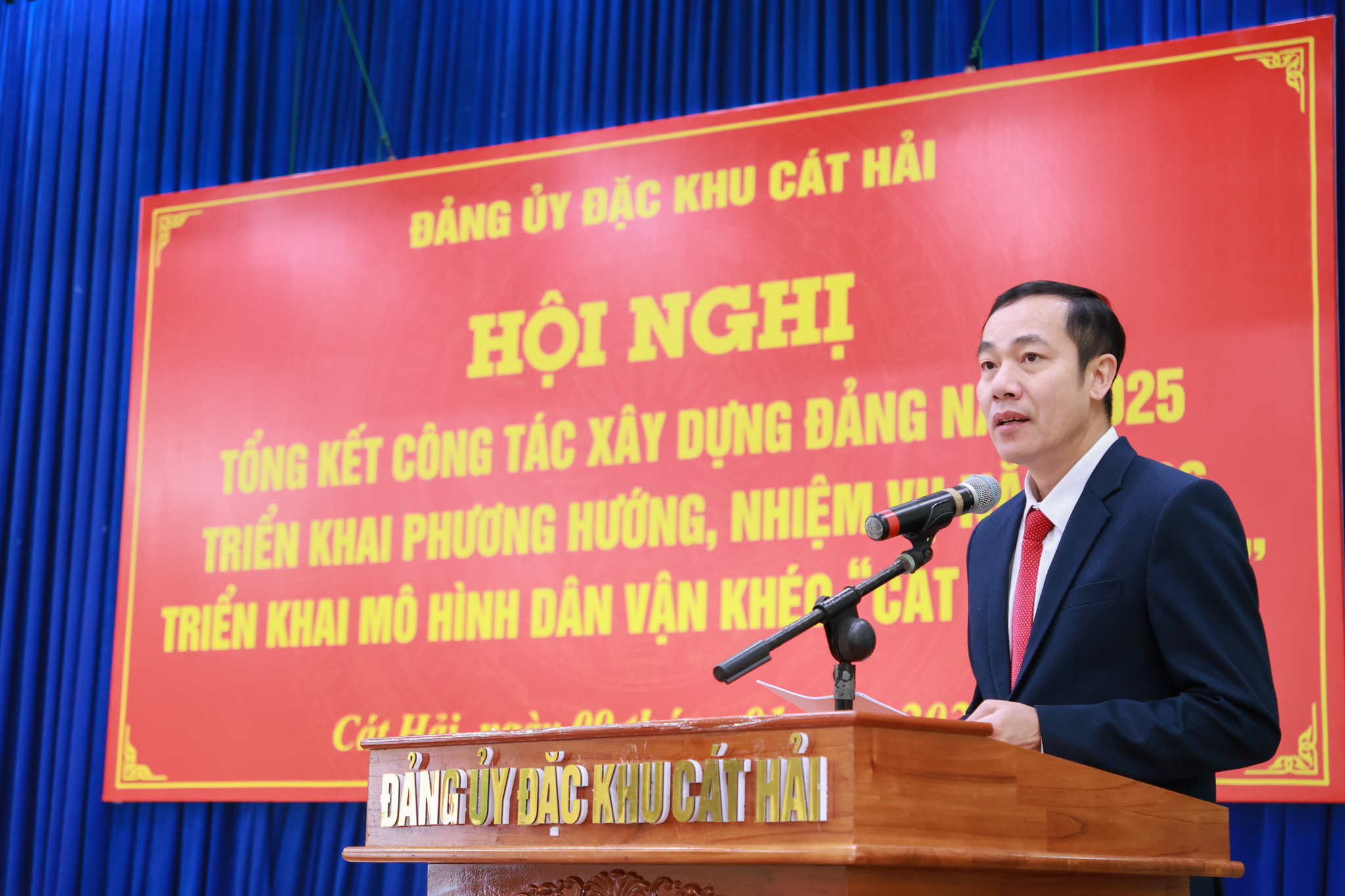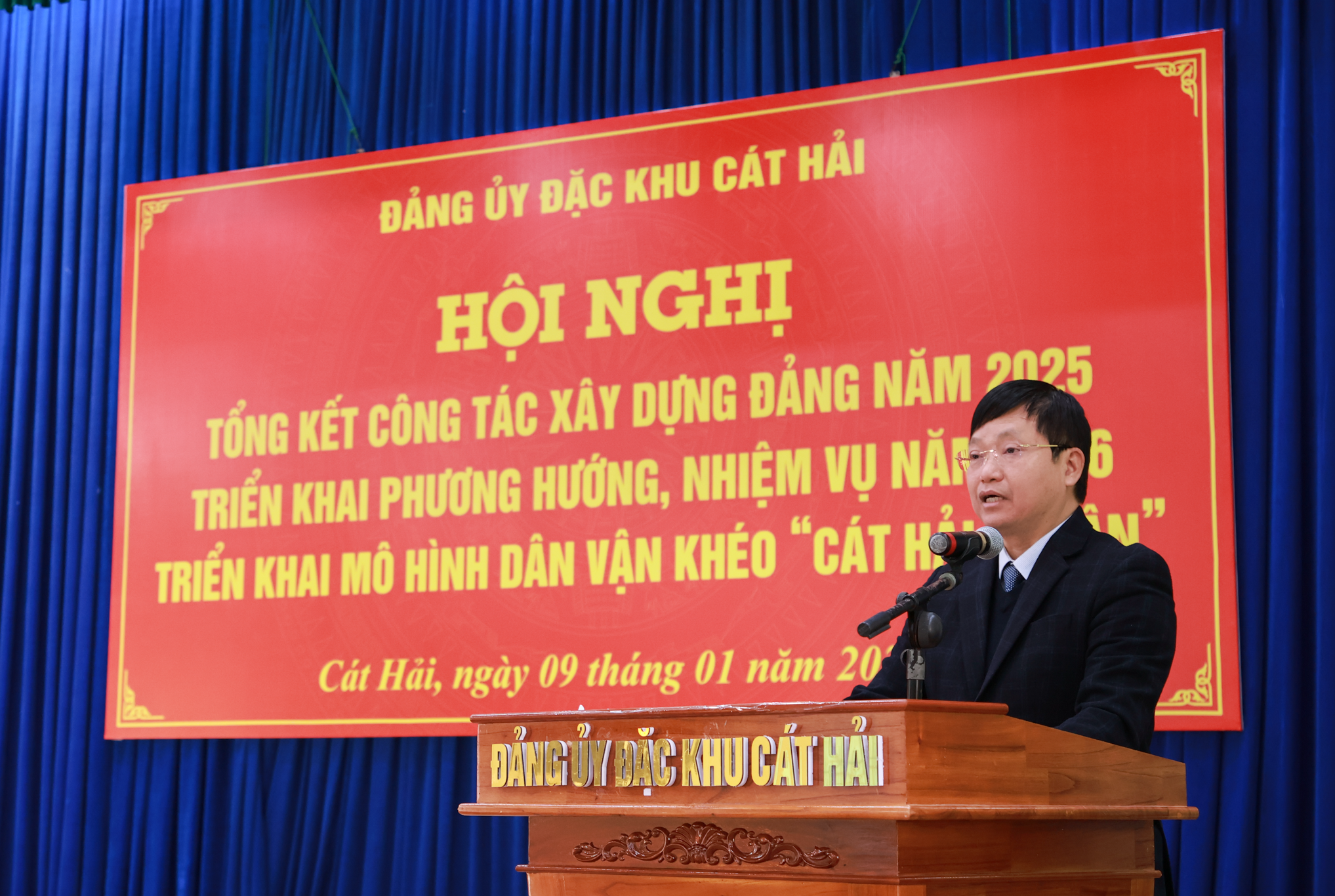Tại hội nghị, các đại biểu đã nghe báo cáo tổng kết công tác xây dựng Đảng năm 2025. Trong bối cảnh Đảng bộ đặc khu Cát Hải được thành lập và đi vào hoạt động từ ngày 1/7/2025 theo mô hình chính quyền địa phương hai cấp, Ban Chấp hành, Ban Thường vụ Đảng ủy đặc khu đã tập trung lãnh đạo, chỉ đạo kiện toàn tổ chức bộ máy; ban hành quy chế làm việc, chương trình công tác toàn khóa và các chương trình chuyên đề, bảo đảm sự vận hành ổn định, thông suốt của hệ thống chính trị.
