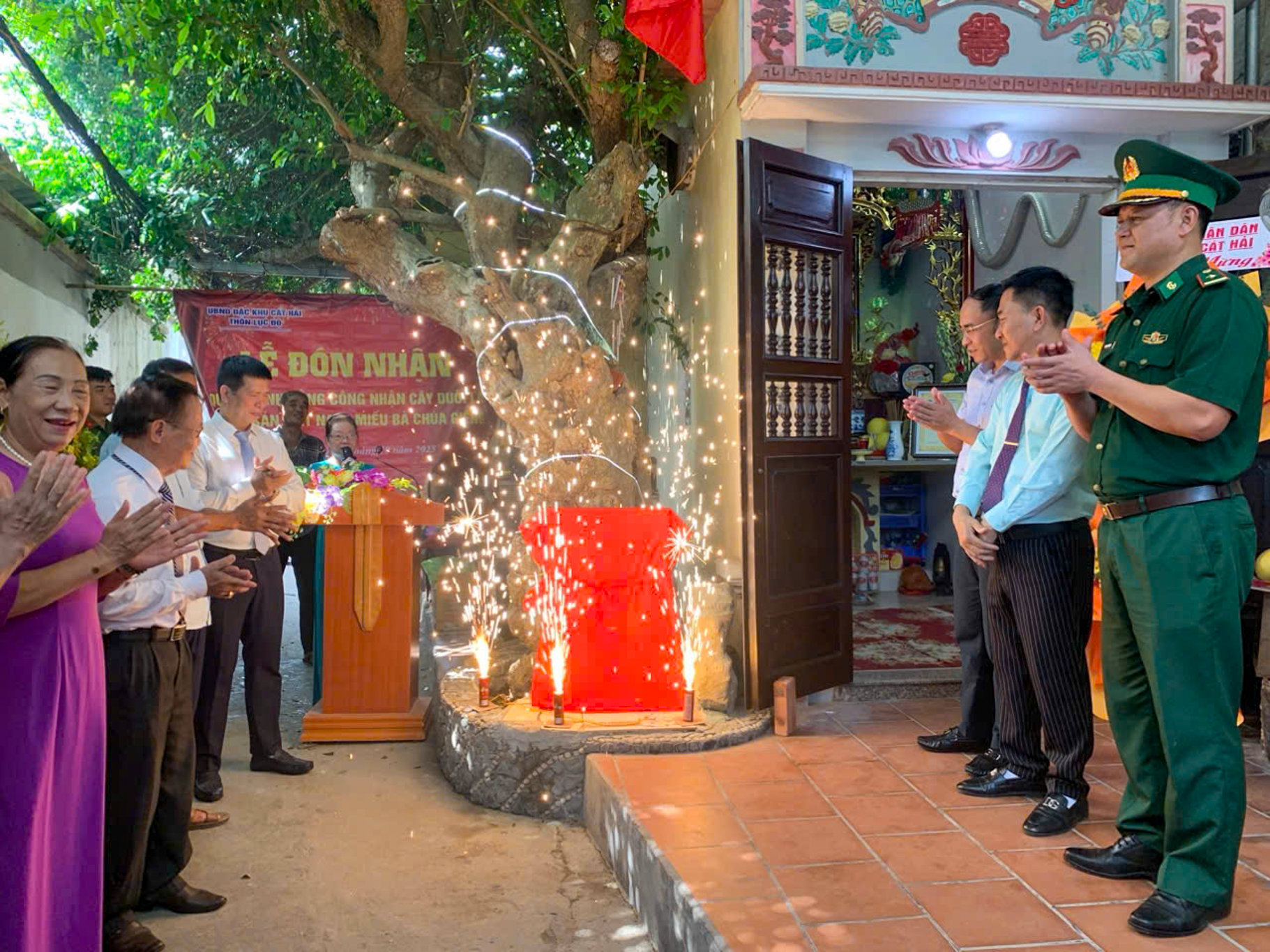 Lễ đón nhận diễn ra trong không khí trang trọng, với các tiết mục văn nghệ chào mừng, nghi thức công bố Quyết định và gắn bia “Cây Di sản Việt Nam”. Người dân và du khách cùng nhau dâng hương, cầu mong bình an, mưa thuận gió hòa.