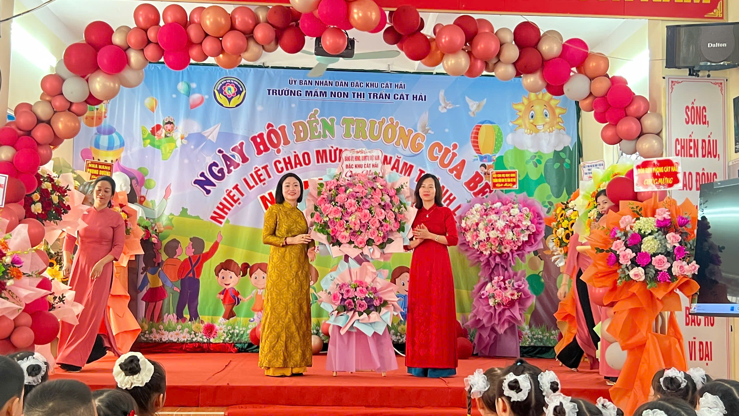 (Đ/c Vũ Hữu Vững - Phó Chủ tịch UBND đặc khu Cát Hải dự và chúc mừng Lễ khai giảng năm học mới Trường Mầm non Sao Mai)