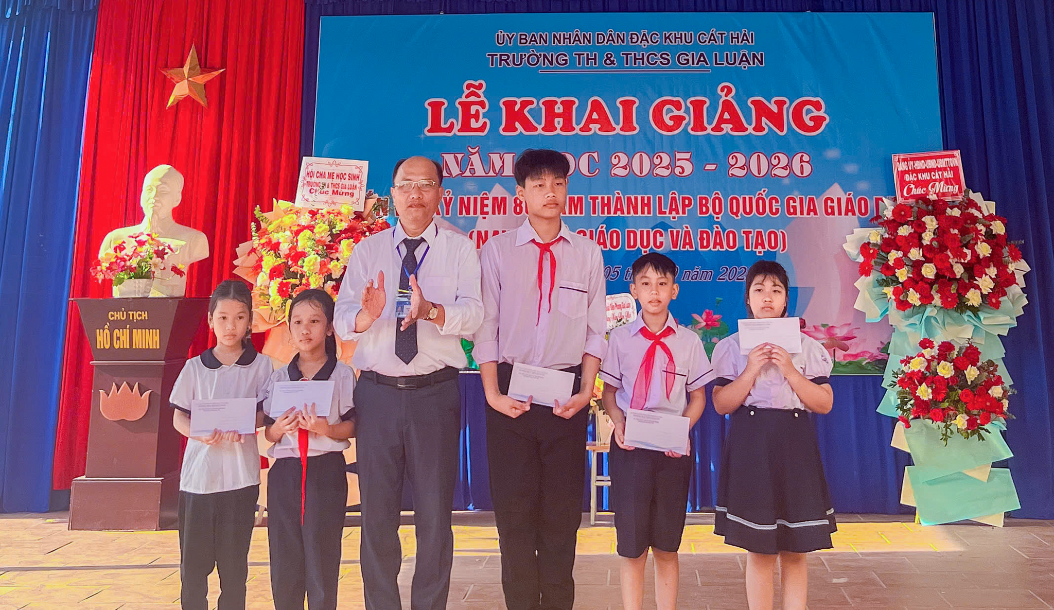 Cùng với học sinh, giáo viên và phụ huynh, các đồng chí lãnh đạo Đảng ủy, HĐND, UBND, Ủy ban MTTQ Việt Nam đặc khu cũng có mặt tại 21/21 trường trên địa bàn đặc khu, trao tặng hoa chúc mừng, gửi gắm tình cảm và niềm tin vào một năm học mới thành công. 70 suất học bổng được trao tận tay các em học sinh có hoàn cảnh khó khăn, tiếp thêm động lực để các em tự tin bước vào chặng đường mới.