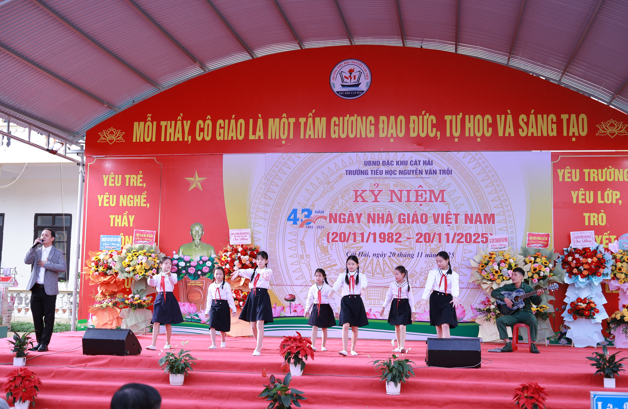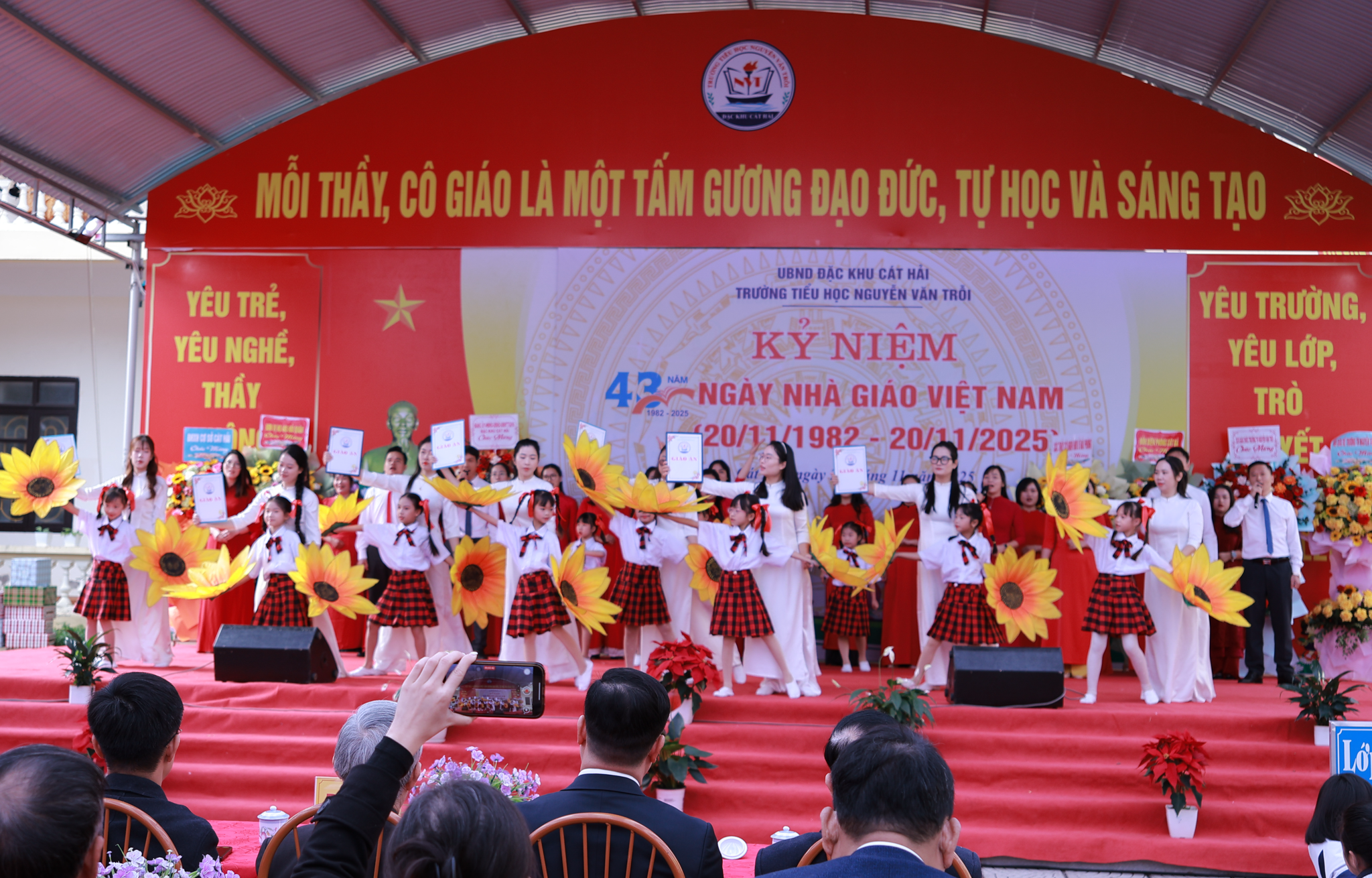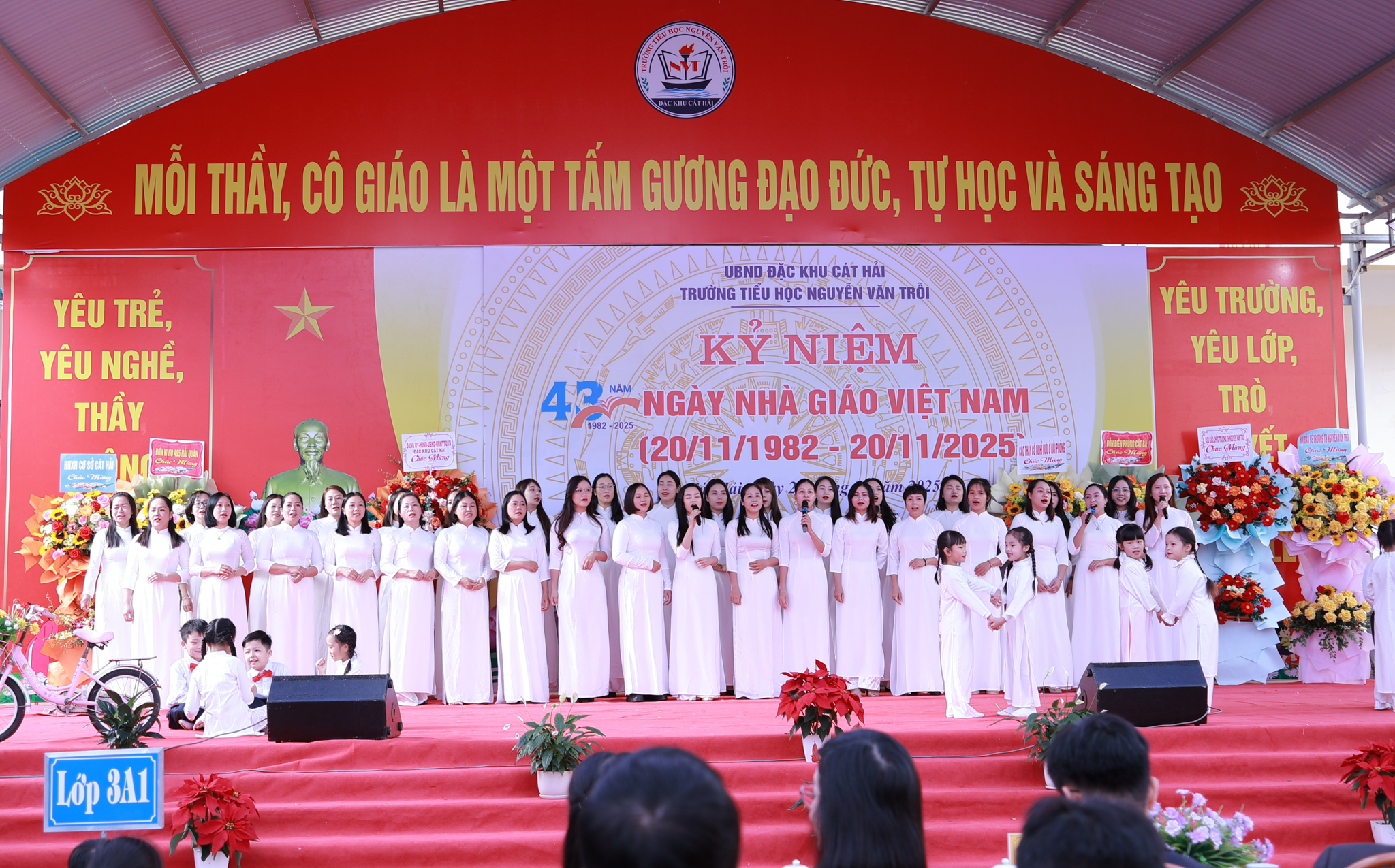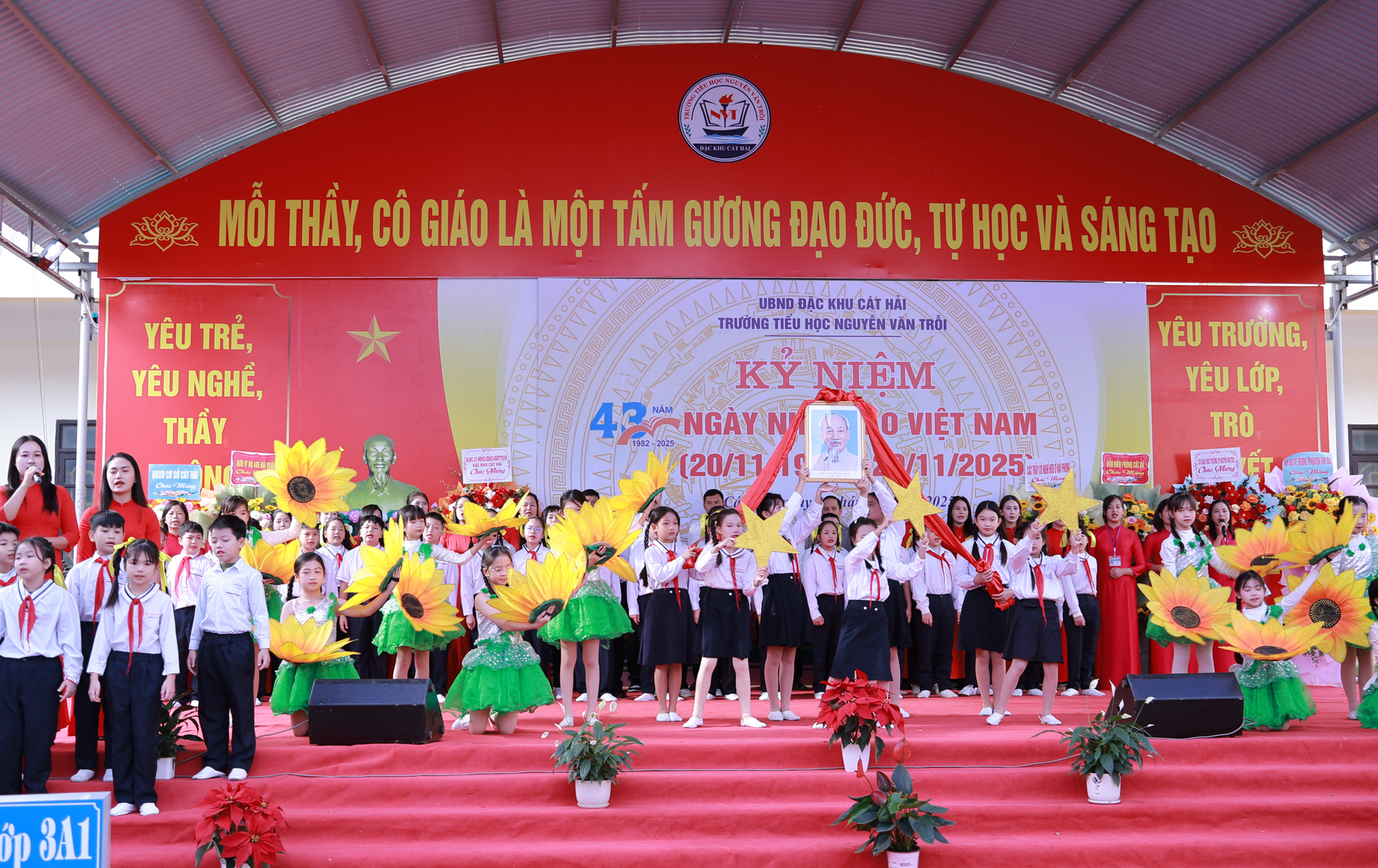 Cùng thời điểm, đồng loạt 21 trường học trên địa bàn Đặc khu Cát Hải cũng tổ chức nhiều hoạt động thiết thực chào mừng kỷ niệm 43 năm Ngày Nhà giáo Việt Nam. Không khí tri ân lan tỏa tại tất cả các cơ sở giáo dục, từ mầm non, tiểu học, THCS đến THPT, với các chương trình văn nghệ, tọa đàm truyền thống tôn sư trọng đạo, phần tri ân thầy cô, giao lưu văn hoá – thể thao và lễ tuyên dương giáo viên, học sinh có thành tích xuất sắc. Những lời chúc mừng chân thành, những bó hoa tươi thắm cùng sự quan tâm của cấp ủy, chính quyền đã tạo nên ngày hội ý nghĩa, động viên đội ngũ nhà giáo tiếp tục cống hiến cho sự nghiệp trồng người của đặc khu.