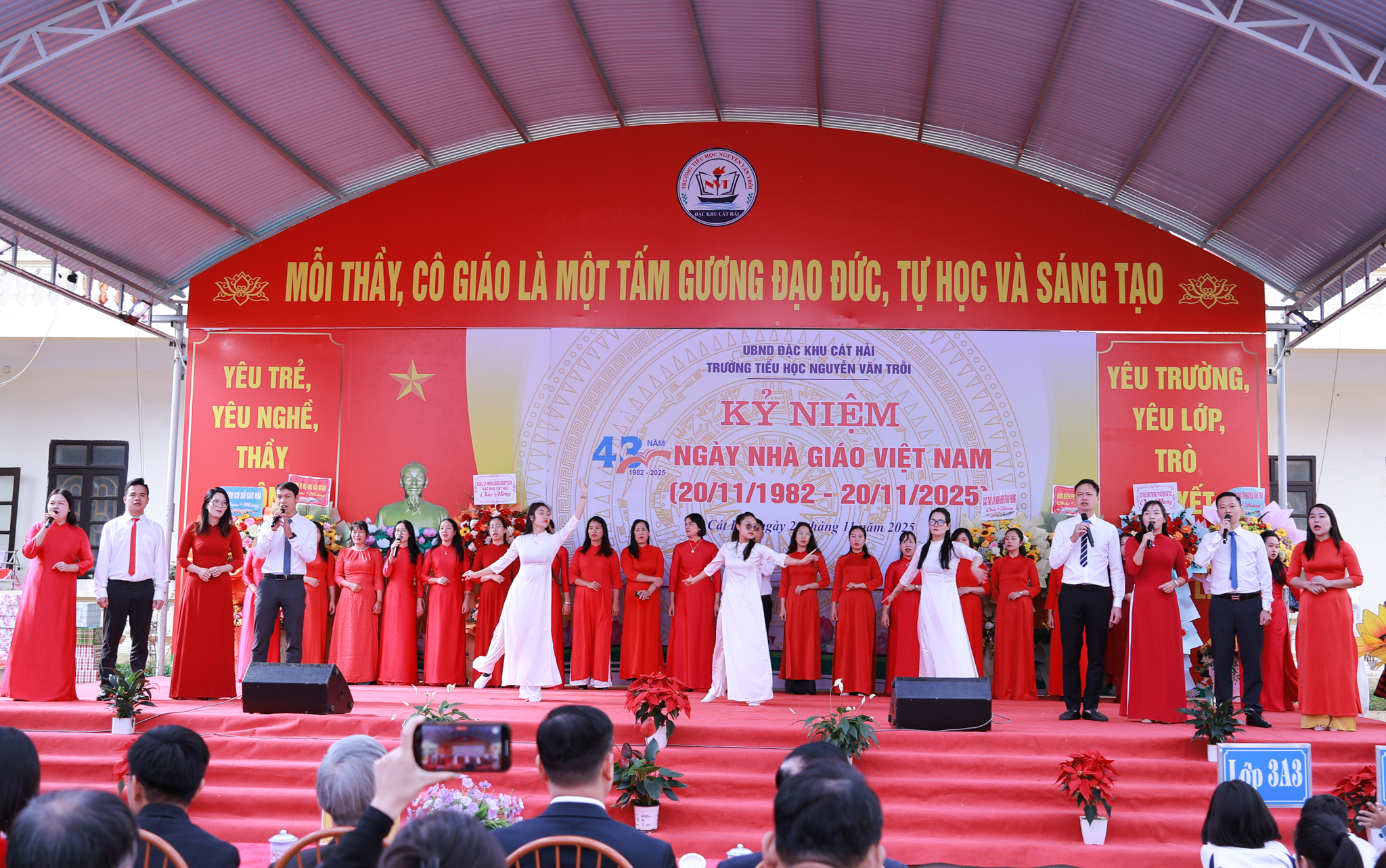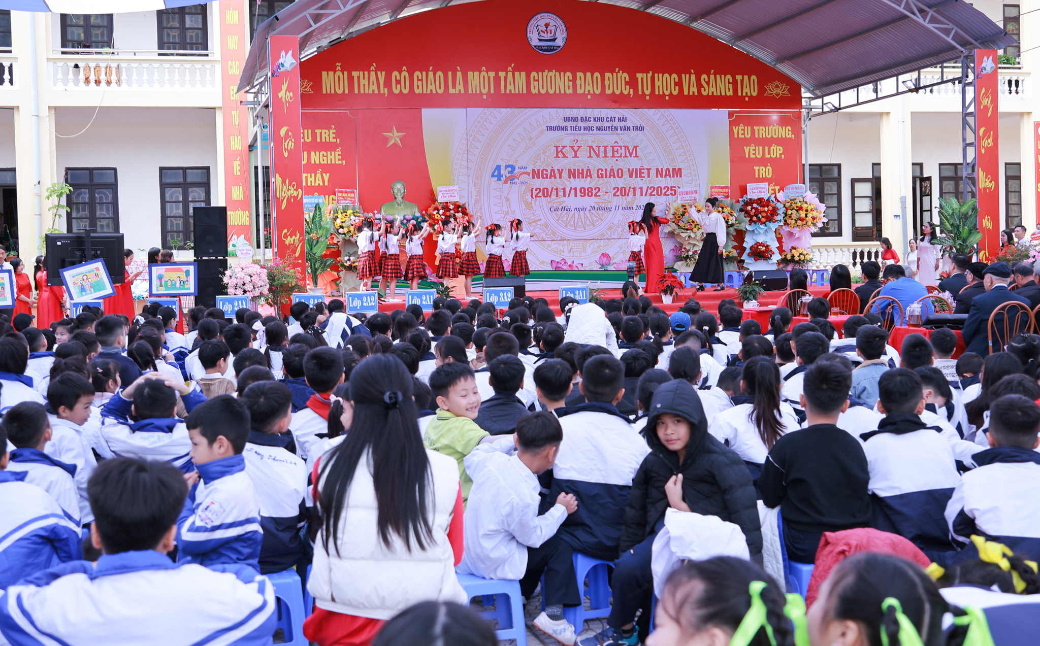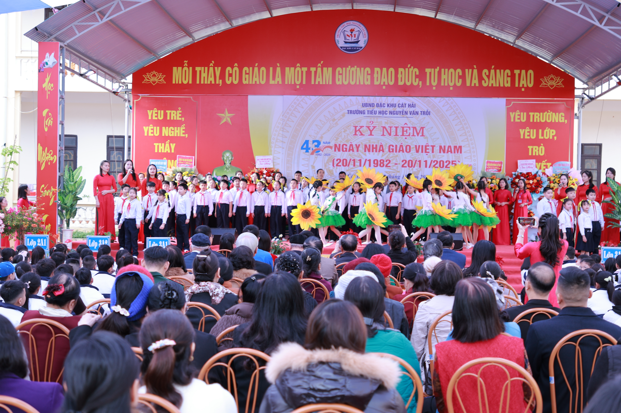 Cùng thời điểm, đồng loạt 21 trường học trên địa bàn Đặc khu Cát Hải cũng tổ chức nhiều hoạt động thiết thực chào mừng kỷ niệm 43 năm Ngày Nhà giáo Việt Nam. Không khí tri ân lan tỏa tại tất cả các cơ sở giáo dục, từ mầm non, tiểu học, THCS đến THPT, với các chương trình văn nghệ, tọa đàm truyền thống tôn sư trọng đạo, phần tri ân thầy cô, giao lưu văn hoá – thể thao và lễ tuyên dương giáo viên, học sinh có thành tích xuất sắc. Những lời chúc mừng chân thành, những bó hoa tươi thắm cùng sự quan tâm của cấp ủy, chính quyền đã tạo nên ngày hội ý nghĩa, động viên đội ngũ nhà giáo tiếp tục cống hiến cho sự nghiệp trồng người của đặc khu.