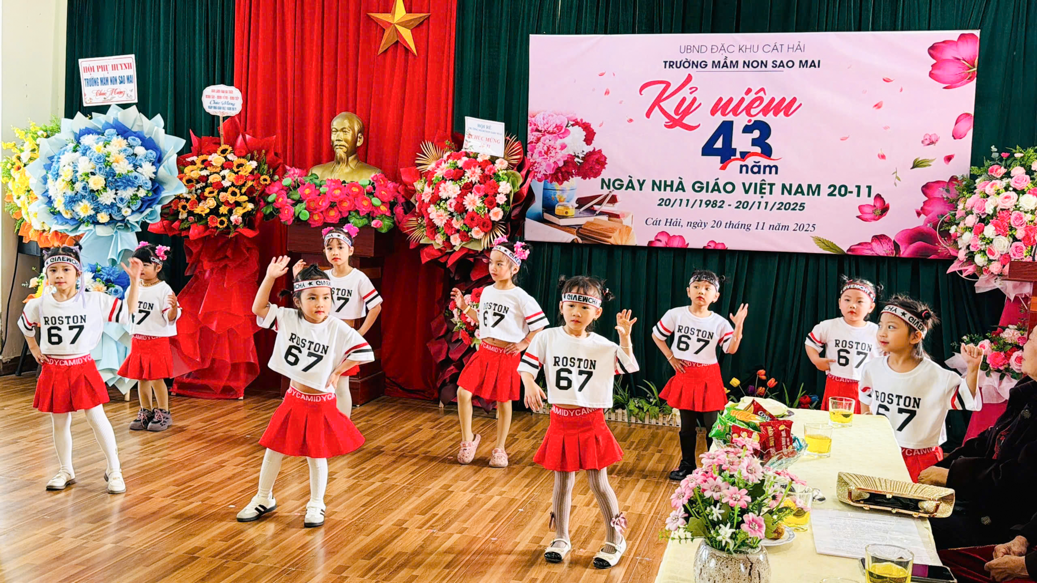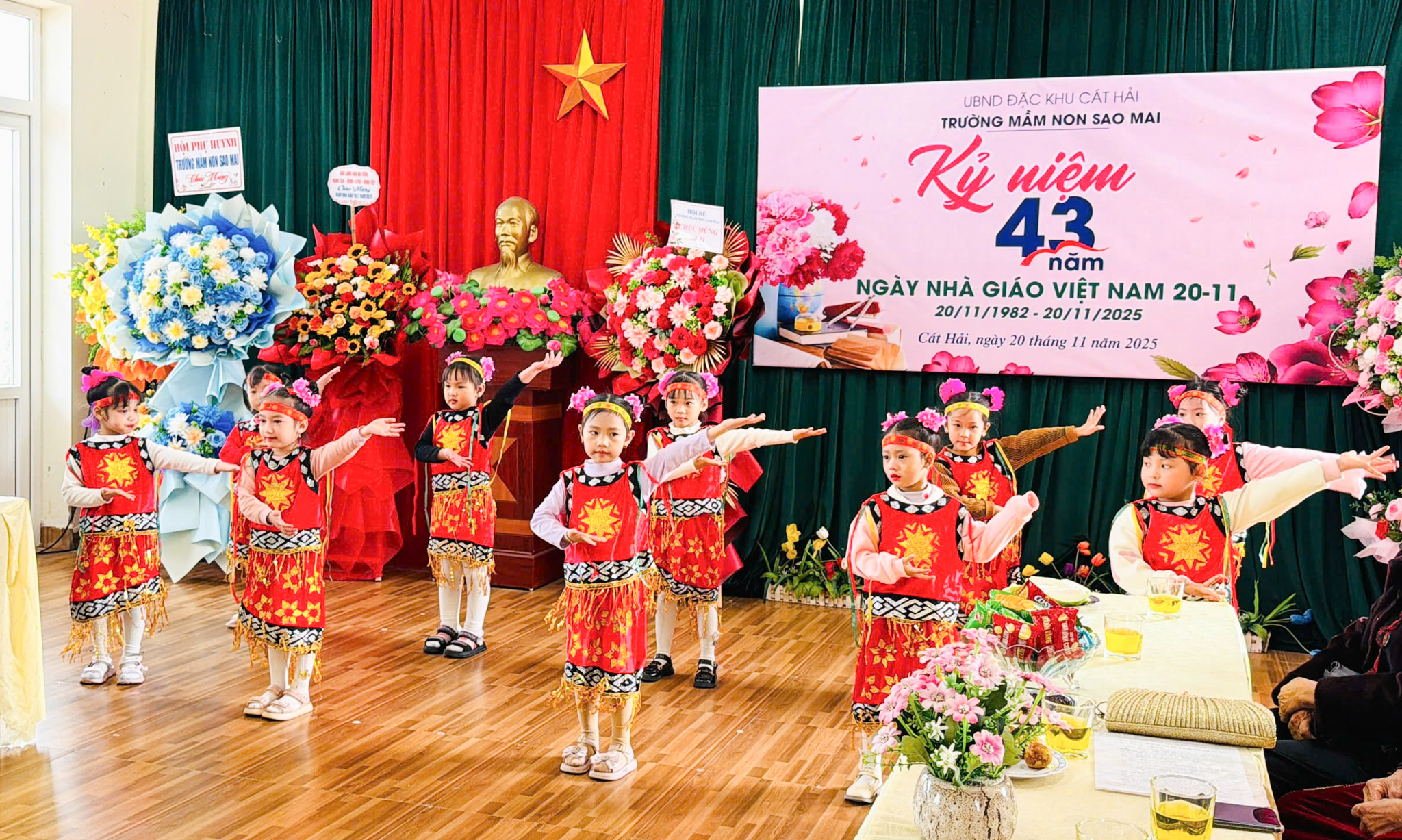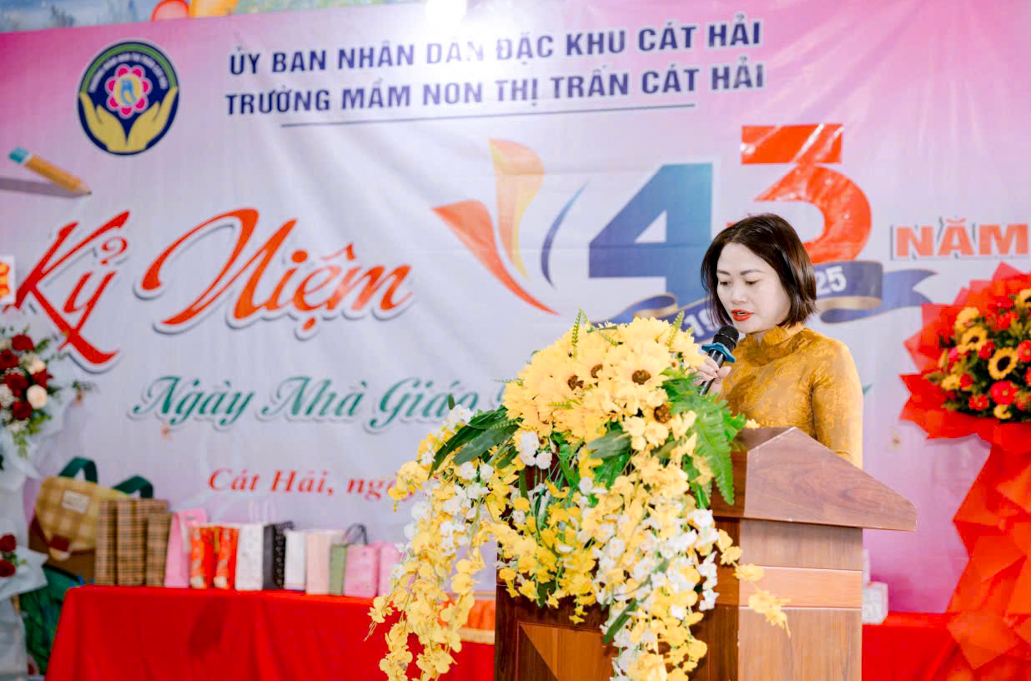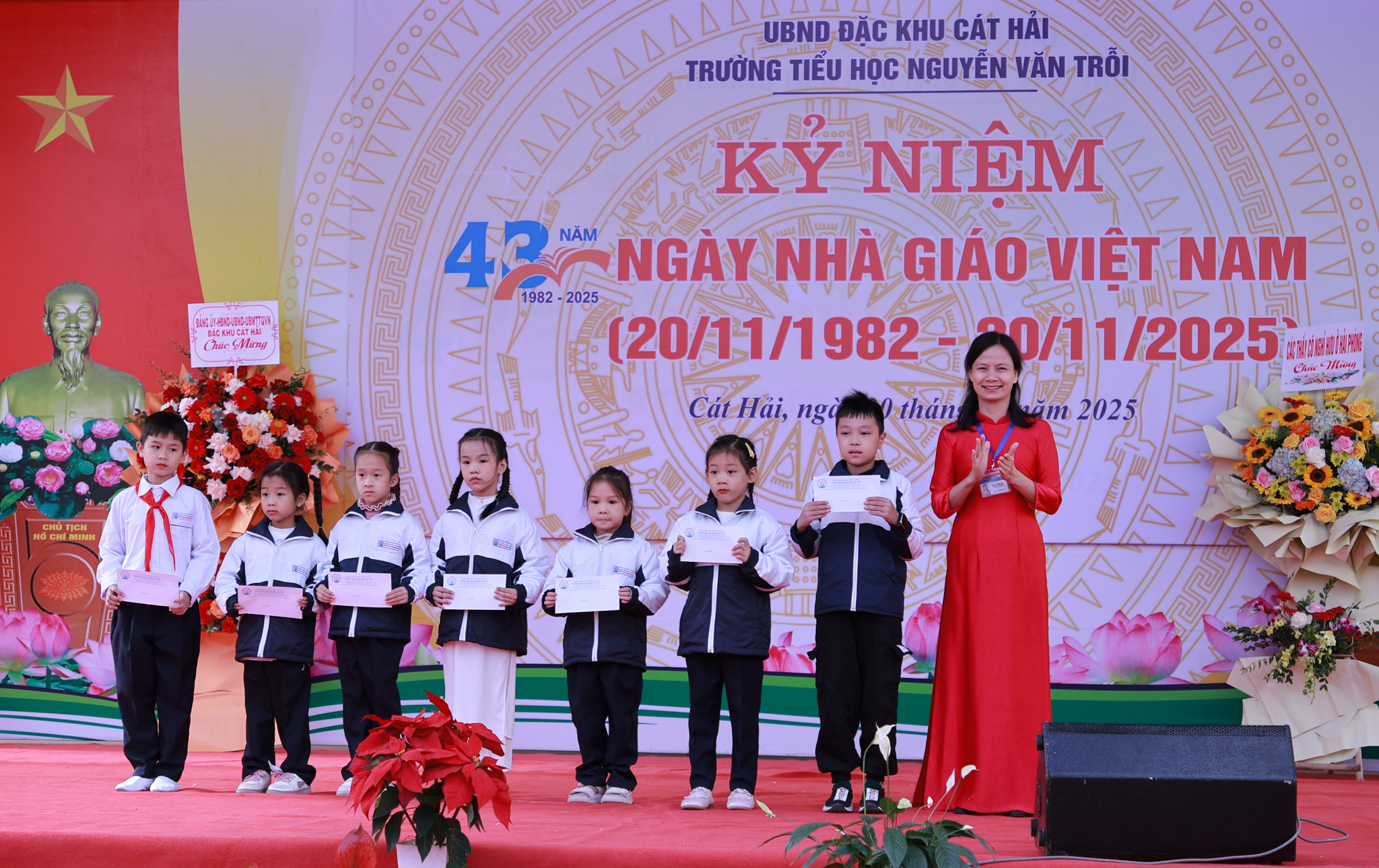 Cùng thời điểm, đồng loạt 21 trường học trên địa bàn Đặc khu Cát Hải cũng tổ chức nhiều hoạt động thiết thực chào mừng kỷ niệm 43 năm Ngày Nhà giáo Việt Nam. Không khí tri ân lan tỏa tại tất cả các cơ sở giáo dục, từ mầm non, tiểu học, THCS đến THPT, với các chương trình văn nghệ, tọa đàm truyền thống tôn sư trọng đạo, phần tri ân thầy cô, giao lưu văn hoá – thể thao và lễ tuyên dương giáo viên, học sinh có thành tích xuất sắc. Những lời chúc mừng chân thành, những bó hoa tươi thắm cùng sự quan tâm của cấp ủy, chính quyền đã tạo nên ngày hội ý nghĩa, động viên đội ngũ nhà giáo tiếp tục cống hiến cho sự nghiệp trồng người của đặc khu.