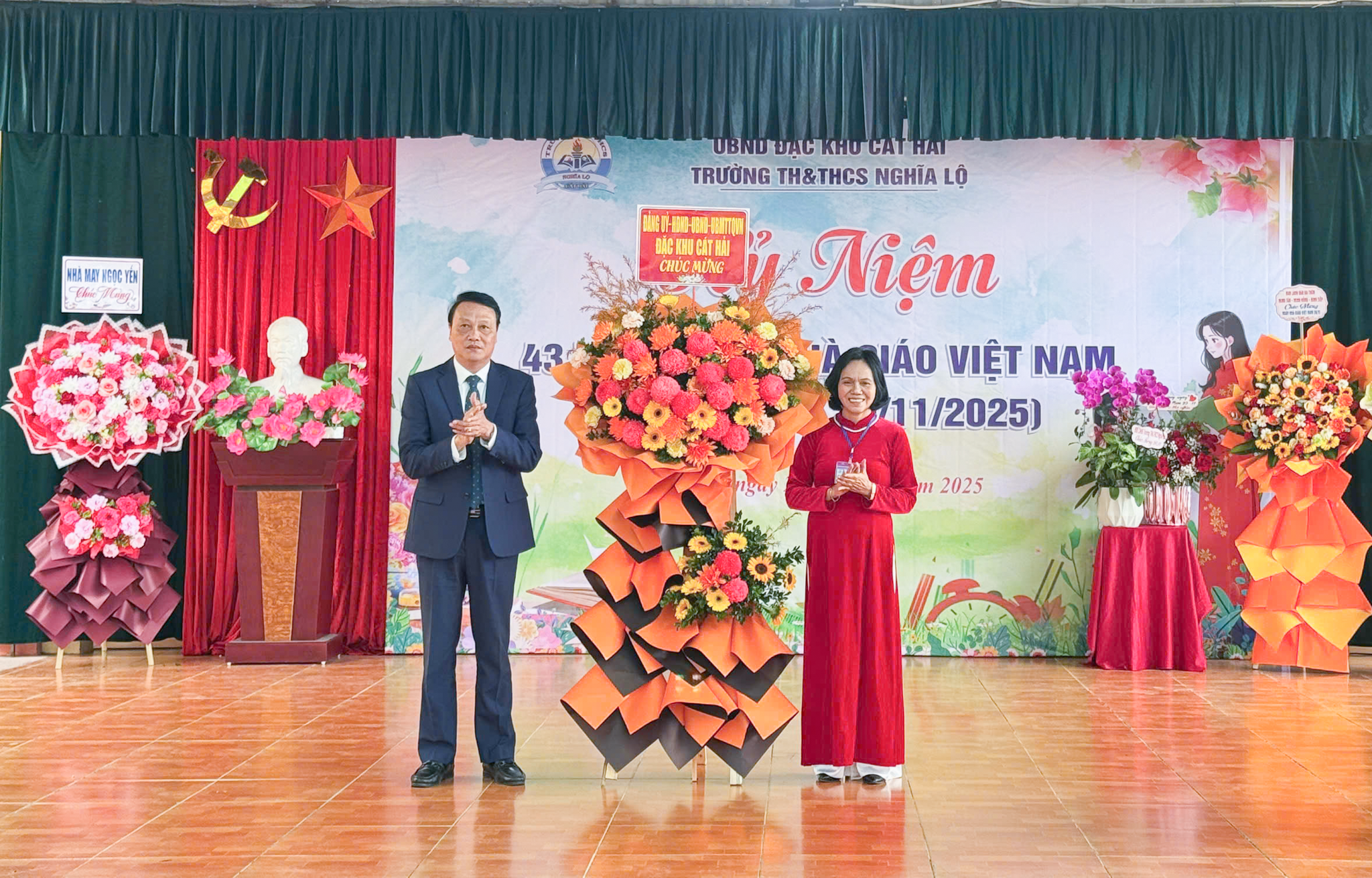 Tại Trường TH&THCS Nghĩa Lộ, đoàn do đồng chí Nguyễn Hoàng Minh - Ủy viên Ban Thường vụ Đảng ủy, Phó Chủ tịch Thường trực HĐND đặc khu - làm trưởng đoàn đã đến thăm, gửi lời chúc mừng và dự các hoạt động kỷ niệm. Đoàn động viên đội ngũ giáo viên tiếp tục nỗ lực vượt khó, nâng cao chất lượng dạy học.