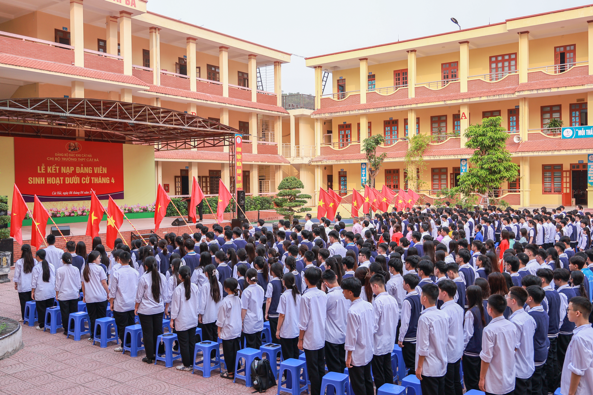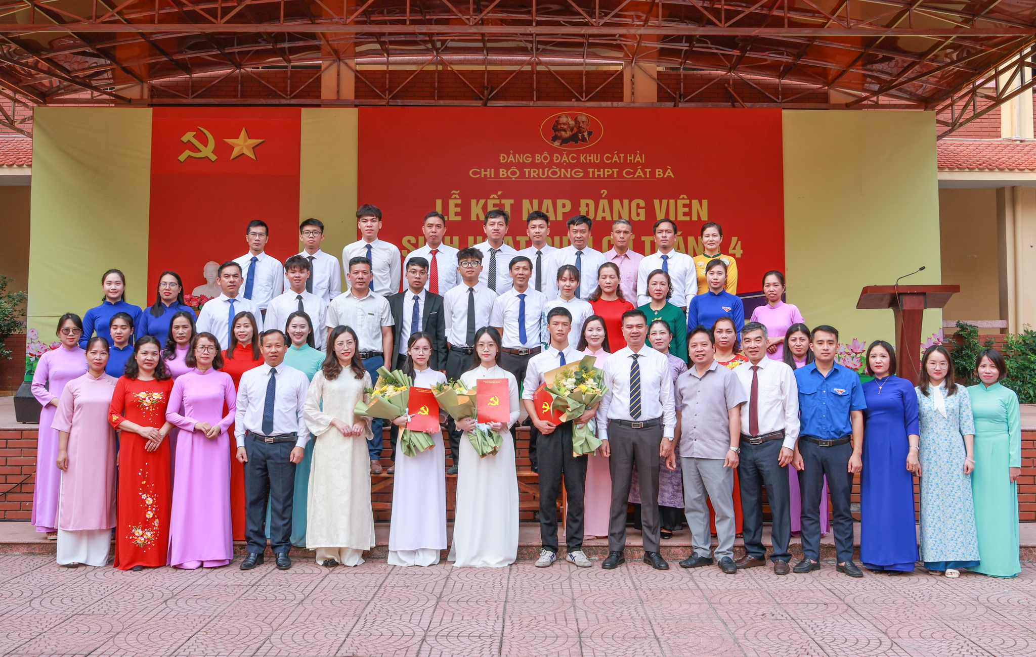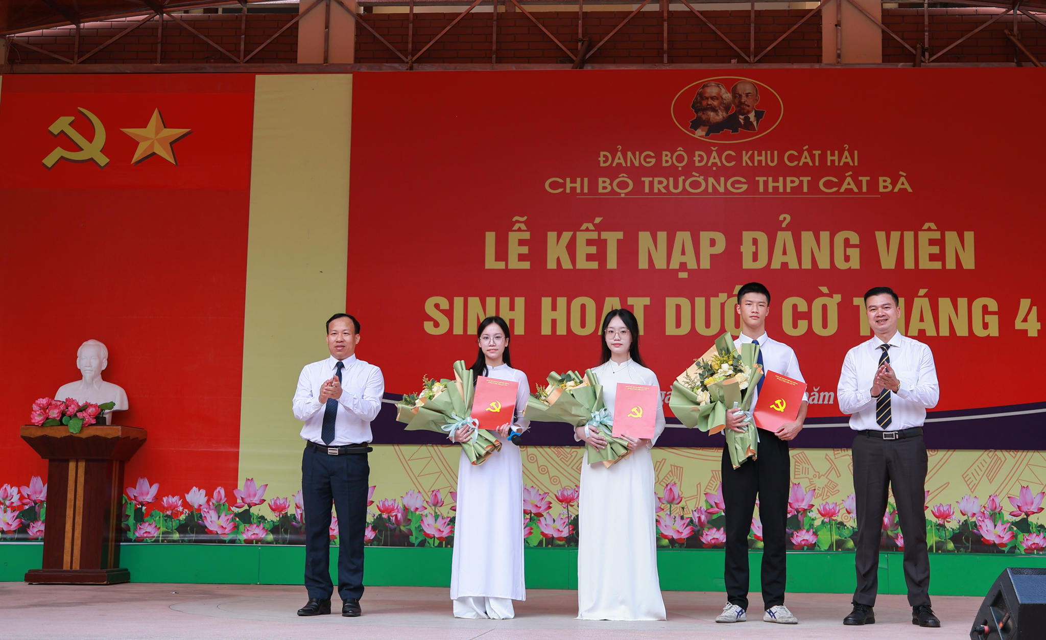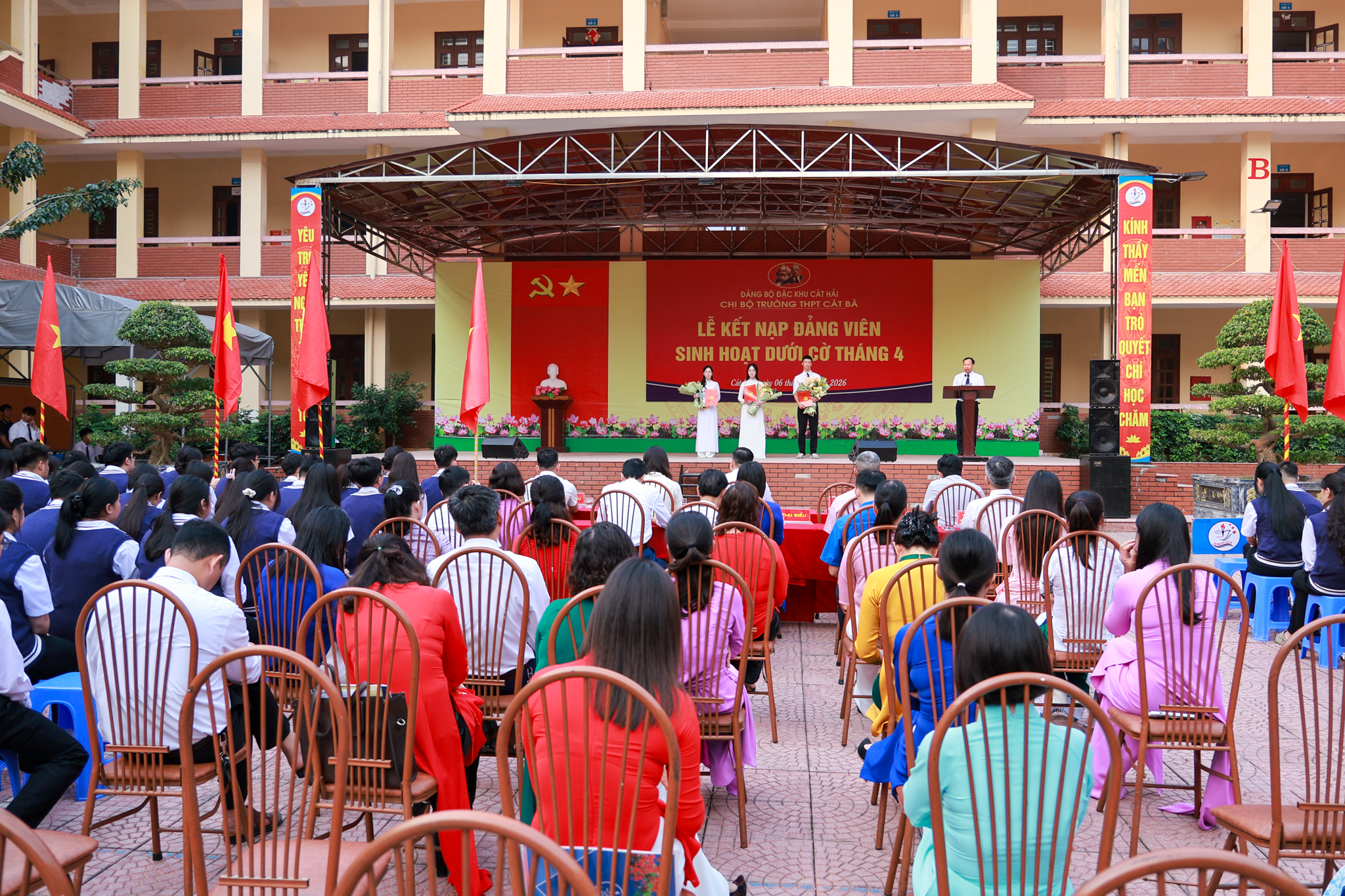 Sáng 6/4/2026, tại Trường THPT Cát Bà (Đặc khu Cát Hải), Chi bộ nhà trường long trọng tổ chức Lễ kết nạp Đảng viên cho các đoàn viên ưu tú là học sinh, đánh dấu bước tiến quan trọng trong công tác tạo nguồn, bồi dưỡng và phát triển đảng viên trẻ ngay từ môi trường giáo dục phổ thông.