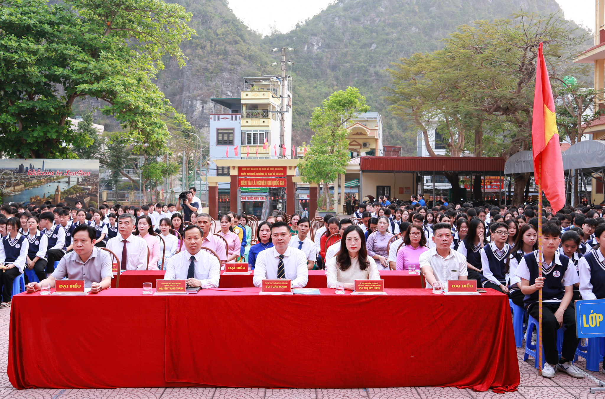 Dự và chỉ đạo buổi lễ có đồng chí Bùi Tuấn Mạnh, Phó Bí thư Thường trực Đảng ủy Đặc khu Cát Hải; cùng sự tham dự của lãnh đạo Ủy ban MTTQ Việt Nam đặc khu, đại diện các ban xây dựng Đảng, các tổ chức chính trị - xã hội của đặc khu. Về phía nhà trường, đồng chí Nguyễn Trung Thành, Bí thư Chi bộ, Hiệu trưởng Trường THPT Cát Bà chủ trì buổi lễ, cùng toàn thể đảng viên trong Chi bộ, cán bộ, giáo viên, nhân viên, đại diện phụ huynh và gần 600 đoàn viên, thanh niên học sinh tham dự.