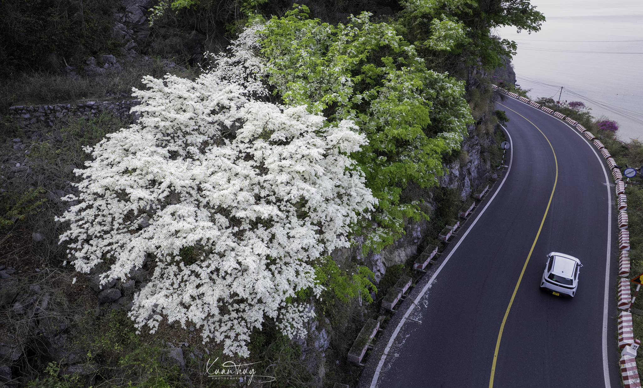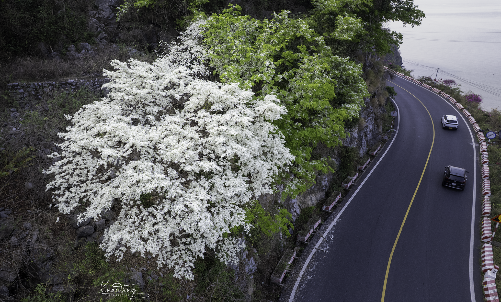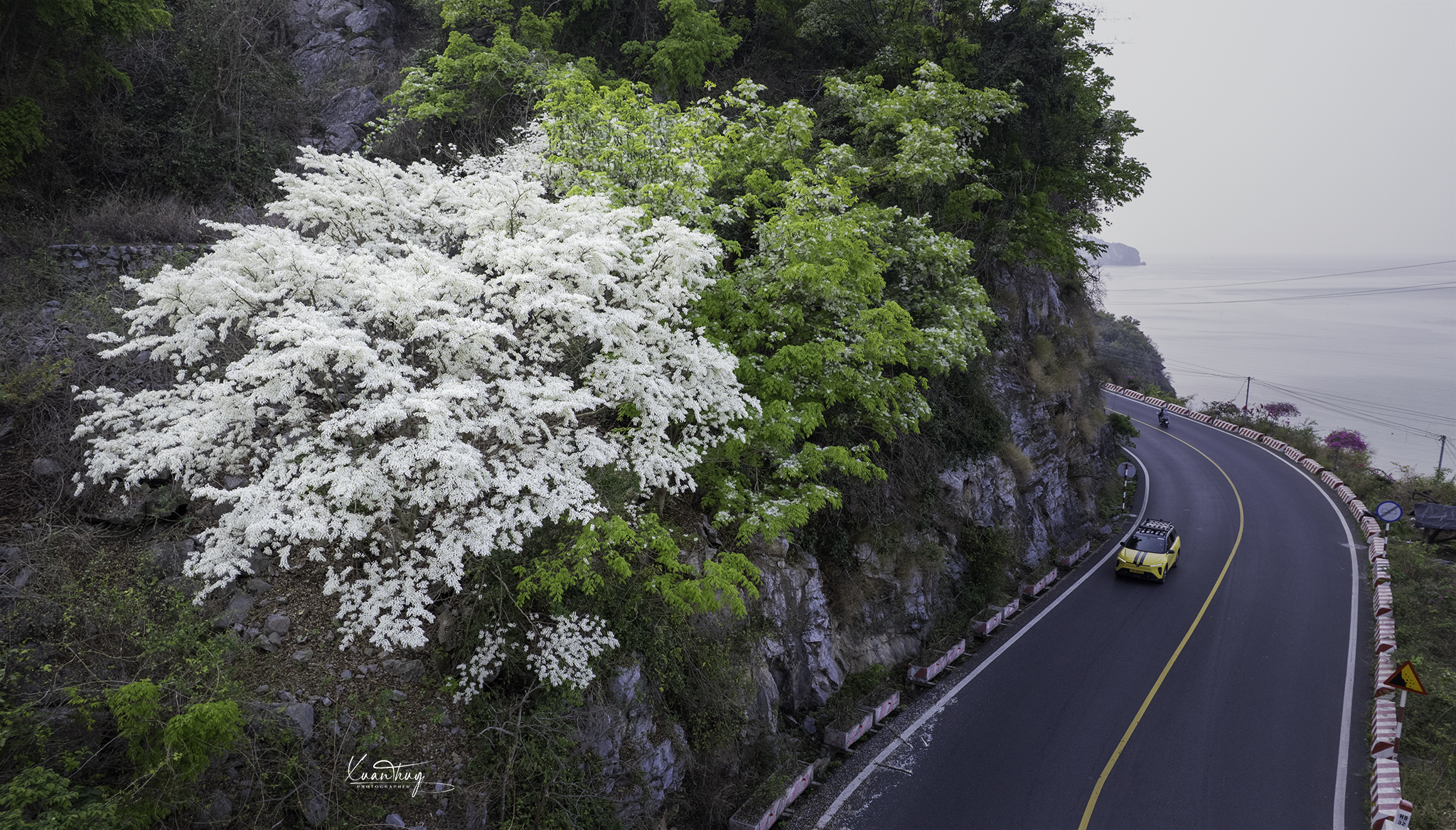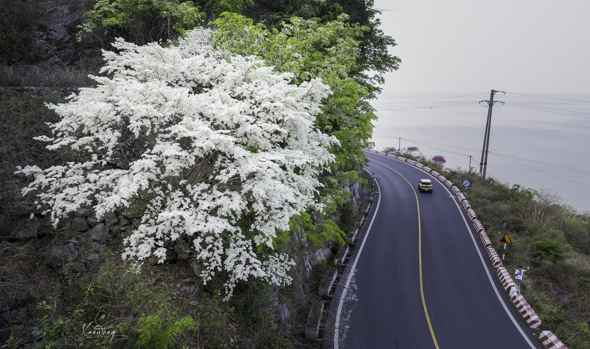 Giữa màu xanh thẳm của núi rừng và biển trời, sắc trắng tinh khôi ấy nổi bật đến nao lòng, khiến ai đi qua cũng phải dừng chân ngắm nhìn.