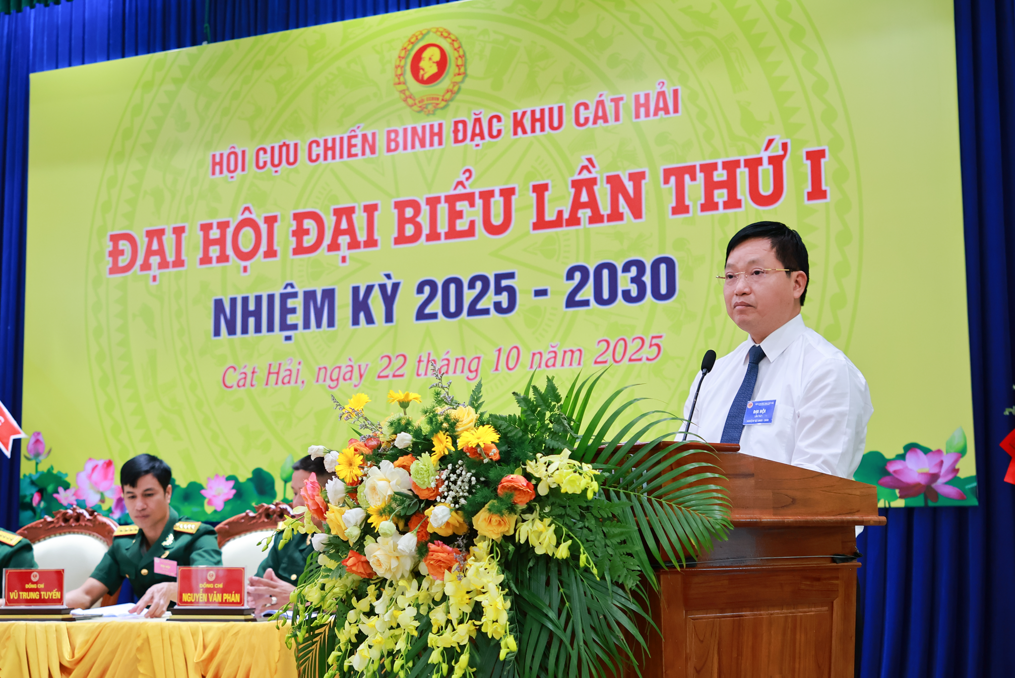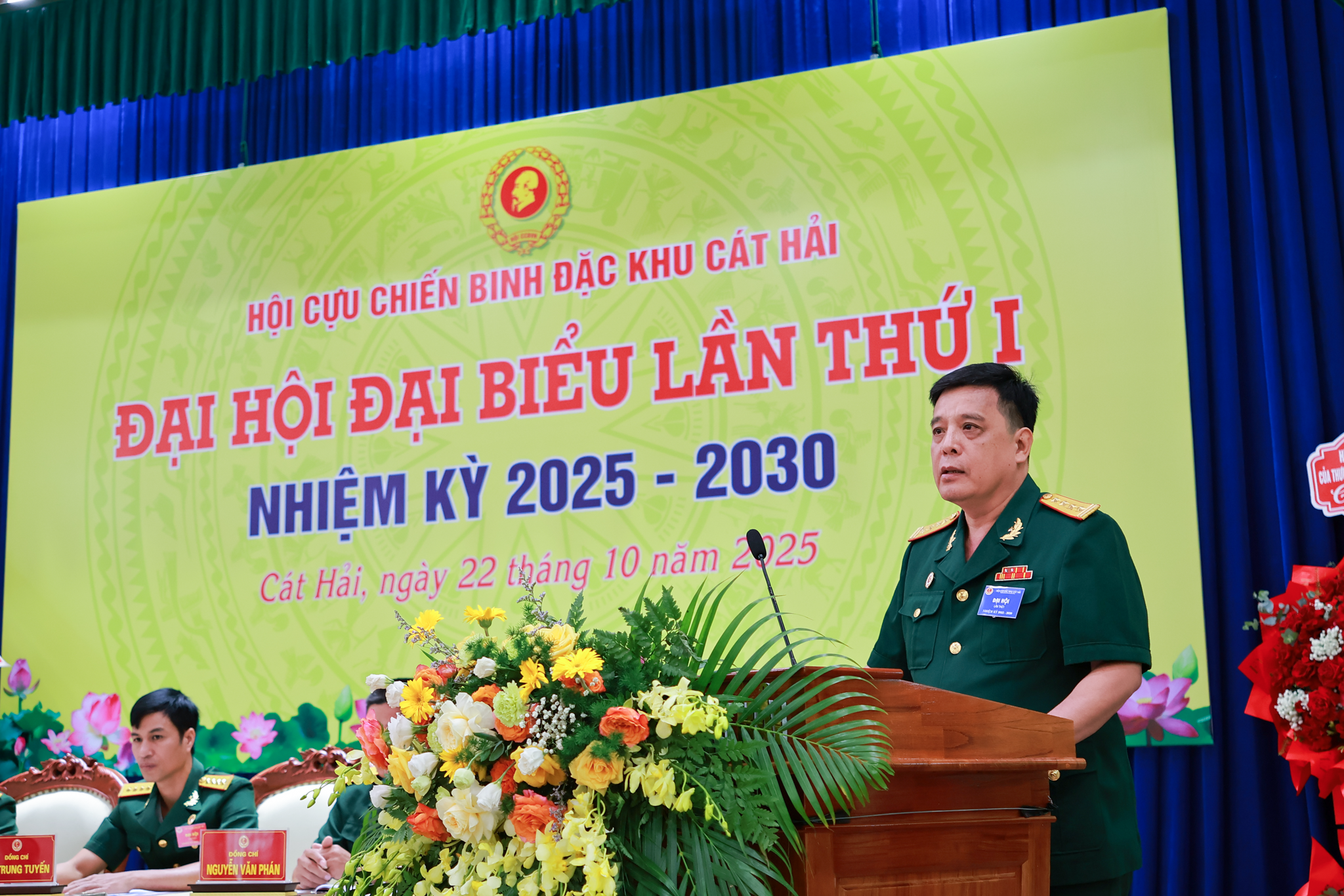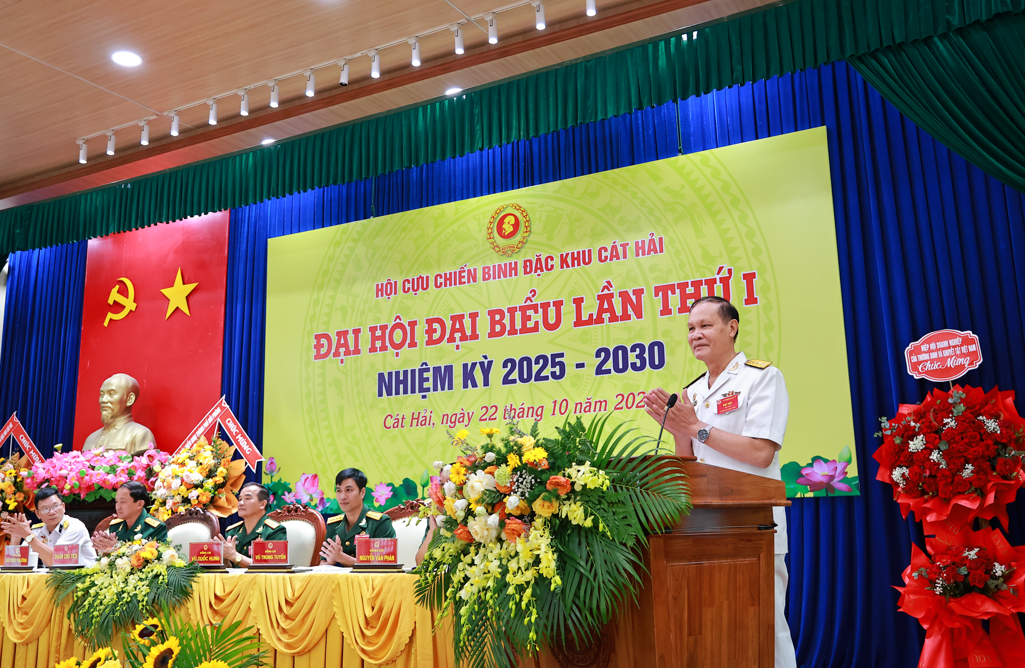 Phát biểu chỉ đạo Đại hội, Đại tá Đại tá Nguyễn Văn Hùng – Phó Chủ tịch Hội CCB thành phố Hải Phòng biểu dương những kết quả Hội CCB Đặc khu Cát Hải đã đạt được; đồng thời nhấn mạnh, trong nhiệm kỳ tới, Hội cần tiếp tục phát huy tinh thần đoàn kết, đổi mới, giữ vững bản lĩnh chính trị, thực hiện tốt vai trò nòng cốt trong khối đại đoàn kết toàn dân, góp phần xây dựng Đặc khu Cát Hải trở thành vùng phát triển năng động, kiểu mẫu của thành phố Hải Phòng.