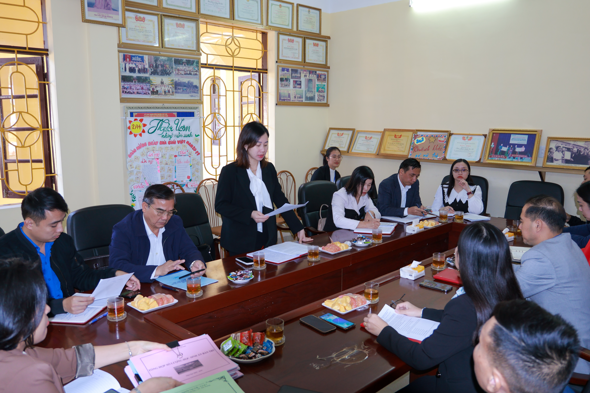 (Đoàn giám sát làm việc với BGH Trường Mầm non Sơn Ca)