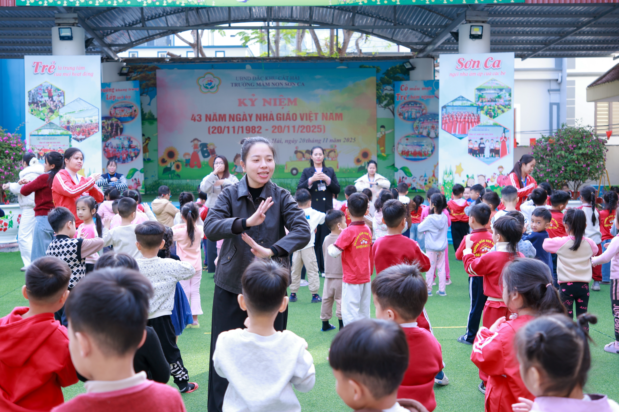 Đối với Trường Mầm non Sơn Ca, công tác tổ chức bữa ăn học đường được triển khai bài bản với 554 trẻ tham gia bán trú, đạt tỷ lệ cao và nhận được sự đồng thuận của phụ huynh. Bếp ăn vận hành theo quy trình một chiều; thực đơn được công khai minh bạch bằng mã QR giúp phụ huynh tra cứu dễ dàng. Nhà trường duy trì đầy đủ các hoạt động phát triển vận động như thể dục sáng, tiết học vận động cơ bản, giờ chơi ngoài trời và hoạt động trên sân chơi thể chất. Qua khảo sát, trẻ tham gia tích cực, hứng thú, đảm bảo mục tiêu phát triển toàn diện.