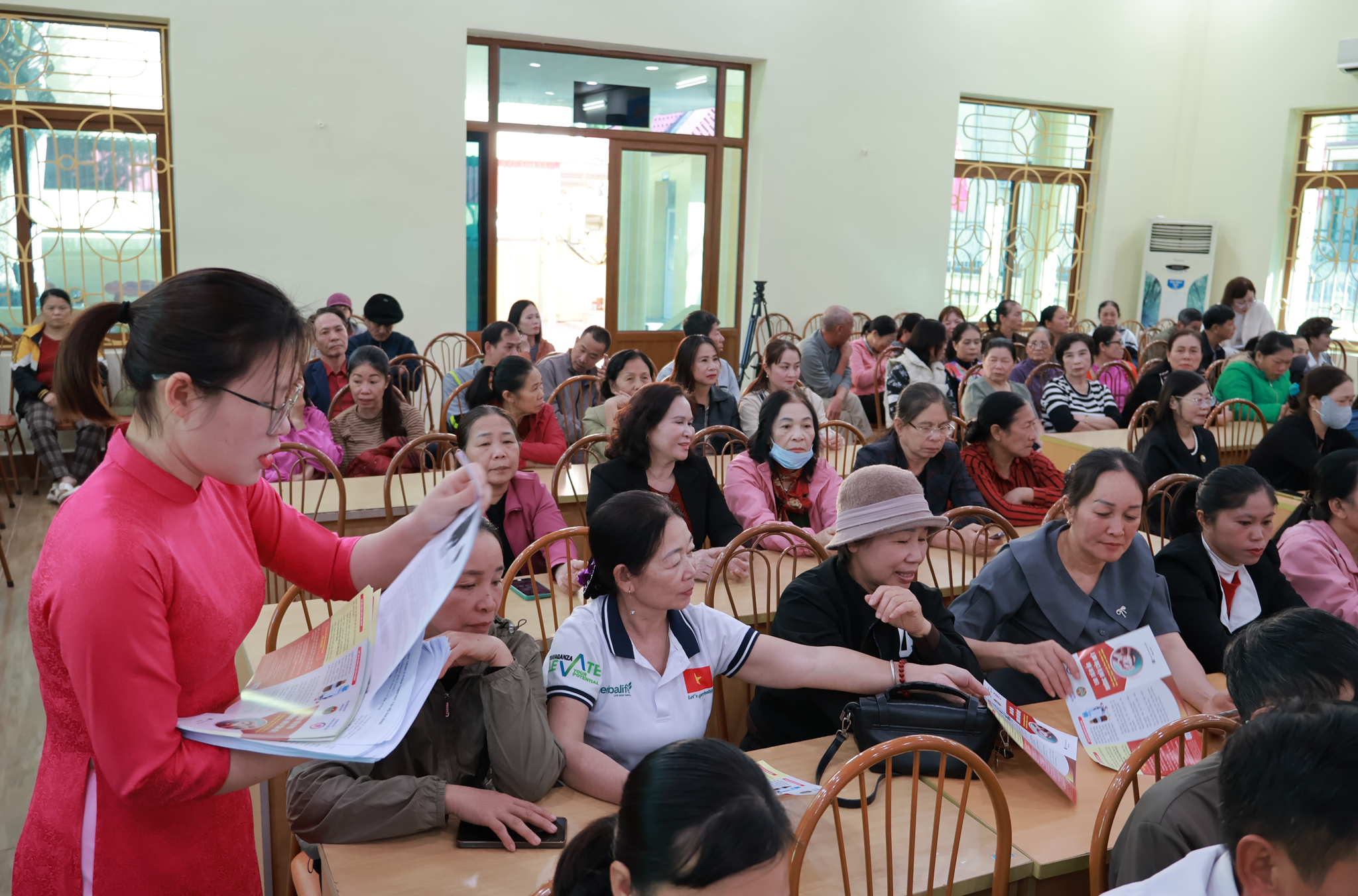 Phần tập huấn được triển khai với nội dung chuyên sâu, bám sát thực tiễn sản xuất và sinh hoạt của hộ nông dân. Cán bộ Hội Nông dân thành phố hướng dẫn kỹ thuật thu gom rác hữu cơ tại nguồn; cách phân loại các nhóm rác theo tiêu chuẩn; quy trình ủ rác bằng chế phẩm vi sinh; phương pháp kiểm soát mùi, côn trùng và đảm bảo an toàn sinh học. Hội viên được thực hành trực tiếp trên mô hình mẫu, nắm rõ từng bước từ chuẩn bị nguyên liệu, chăm sóc thùng ủ đến cách sử dụng phân hữu cơ sau khi hoàn thành quá trình ủ. Song song với nội dung kỹ thuật, hội nghị còn lồng ghép chuyên đề truyền thông về phòng, chống bệnh lao, giúp hội viên nâng cao kiến thức sức khỏe và phòng bệnh trong cộng đồng.