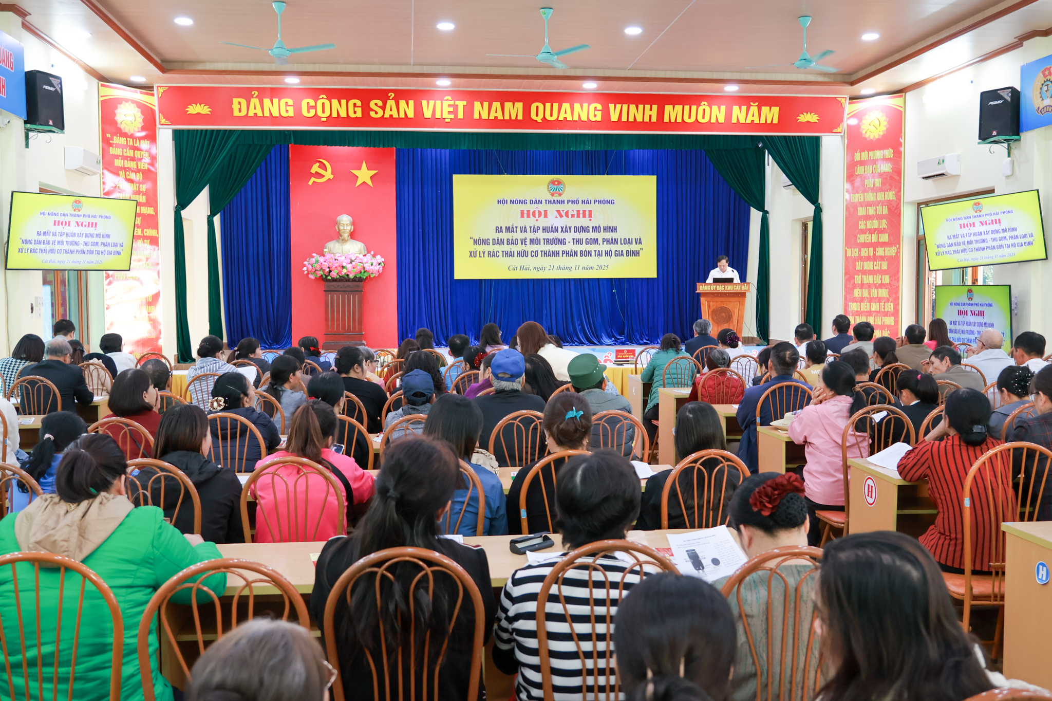 Chiều 21/11/2025, tại Hội trường Trung tâm Chính trị đặc khu Cát Hải, Hội Nông dân đặc khu phối hợp với Ban Công tác Nông dân Hội Nông dân thành phố tổ chức Hội nghị ra mắt và tập huấn mô hình “Nông dân bảo vệ môi trường – Thu gom, phân loại và xử lý rác thải hữu cơ thành phân bón tại hộ gia đình” năm 2025. Sự kiện được tổ chức nhằm thúc đẩy thói quen phân loại rác thải tại nguồn và nâng cao nhận thức của hội viên nông dân trong công tác bảo vệ môi trường.