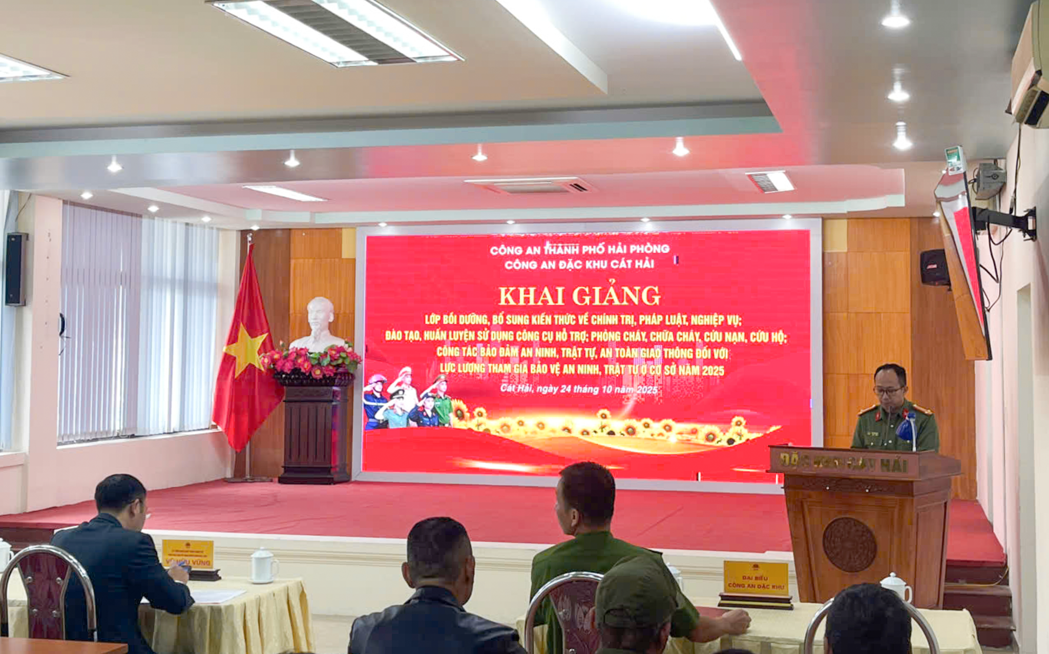 Sáng 24/10/2025, tại hội trường tầng 3 Ủy ban nhân dân Đặc khu Cát Hải, Công an Đặc khu phối hợp với các phòng nghiệp vụ Công an thành phố tổ chức lớp bồi dưỡng, bổ sung kiến thức chính trị, pháp luật và nghiệp vụ cho lực lượng tham gia bảo vệ an ninh, trật tự ở cơ sở. Hoạt động nằm trong khuôn khổ Kế hoạch số 1970/KH-CATP ngày 8/9/2025 của Giám đốc Công an thành phố, do Công an Đặc khu cụ thể hóa và triển khai thực hiện.