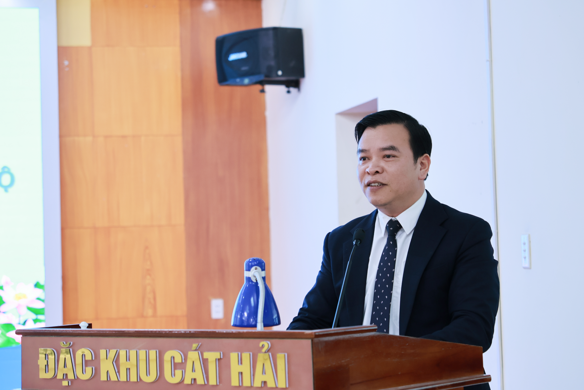 Đ/c Phan Viết Điện - Phó Bí thư Đảng ủy, Chủ tịch UBND đặc khu Cát Hải phát biểu giao nhiệm vụ