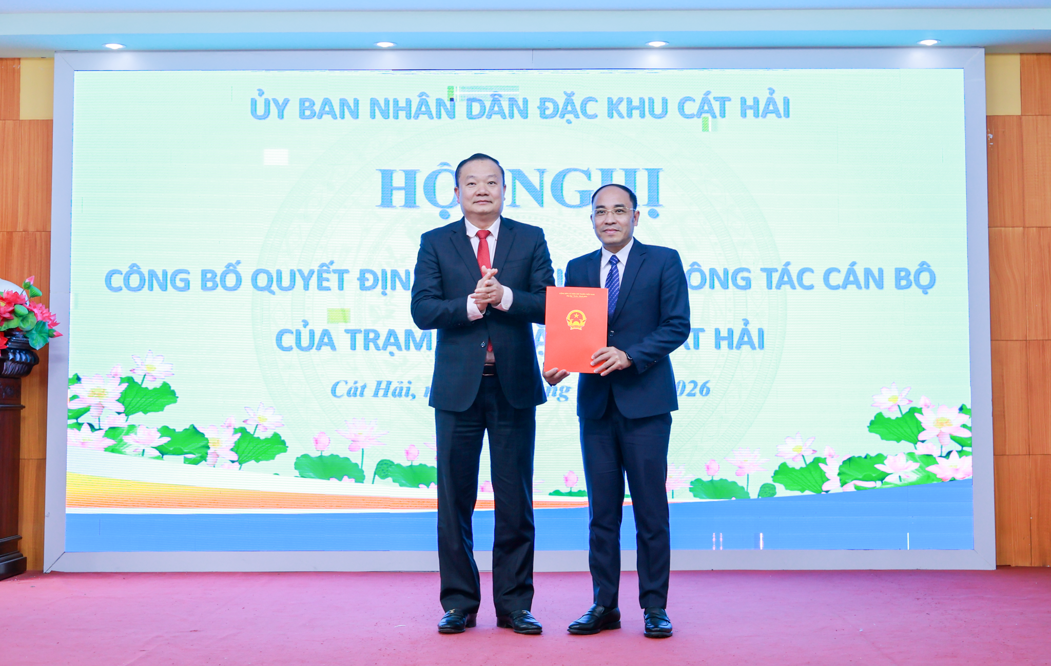 Hội nghị cũng công bố Quyết định của Chủ tịch UBND đặc khu Cát Hải về việc phân công kiêm nhiệm giữ chức vụ Giám đốc Trạm Y tế đặc khu. Theo đó, ông Vũ Hữu Vững - Ủy viên Ban Chấp hành Đảng bộ đặc khu, Phó Chủ tịch UBND đặc khu Cát Hải, được phân công kiêm nhiệm chức vụ Giám đốc Trạm Y tế đặc khu Cát Hải kể từ ngày 01/01/2026 đến khi kiện toàn được nhân sự lãnh đạo theo quy định