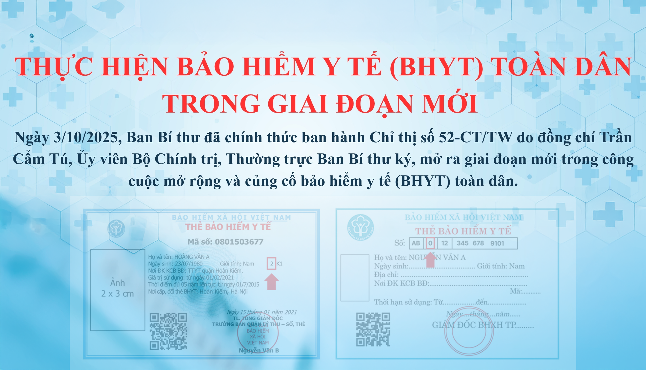 Việc triển khai Chỉ thị số 52-CT/TW trên địa bàn cho thấy sự chủ động, quyết liệt của hệ thống chính trị trong việc bảo đảm an sinh xã hội. Kết quả của chương trình không chỉ nằm ở tỷ lệ bao phủ BHYT tăng lên, mà còn ở việc người dân tiếp cận dịch vụ y tế thuận lợi hơn, tin tưởng hơn vào chính sách của Đảng và Nhà nước, góp phần nâng cao chất lượng đời sống và sức khỏe cộng đồng./.
