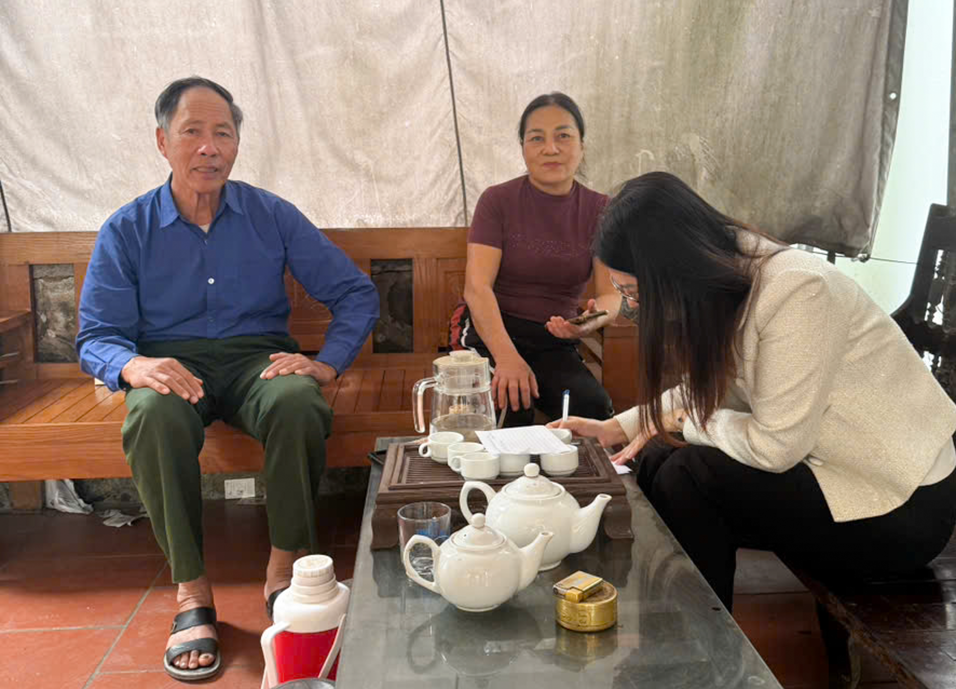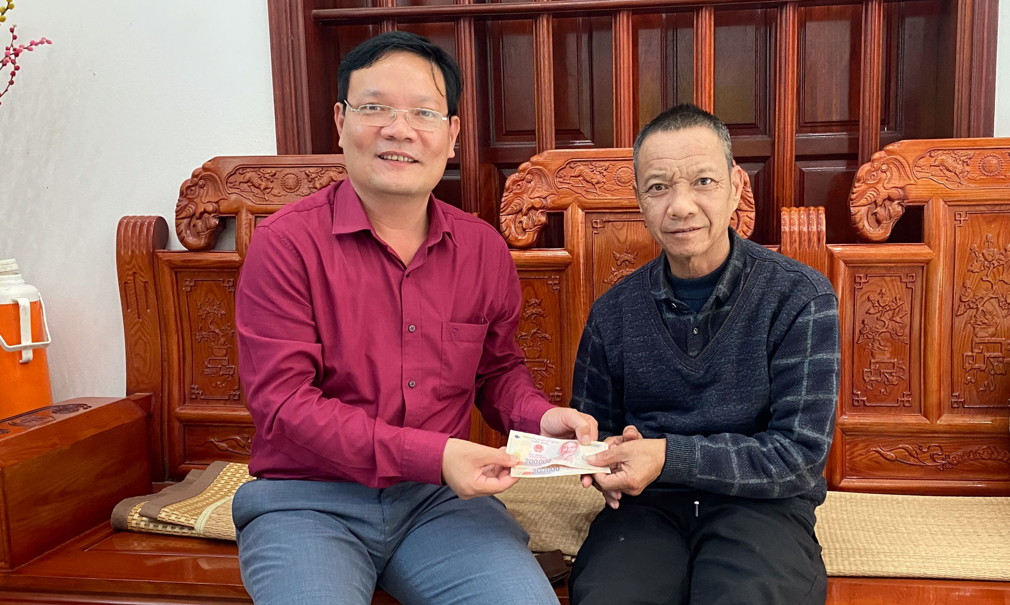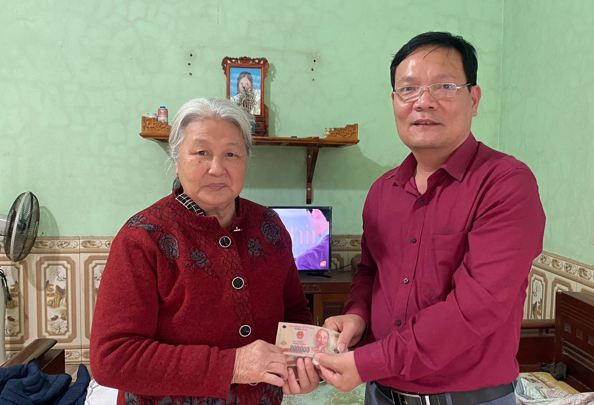 (Trưởng thôn 3 và cán bộ Phòng VHXH đặc khu đến thăm hỏi và trao quà của Đảng và Nhà nước cho gia đình Người có công)
